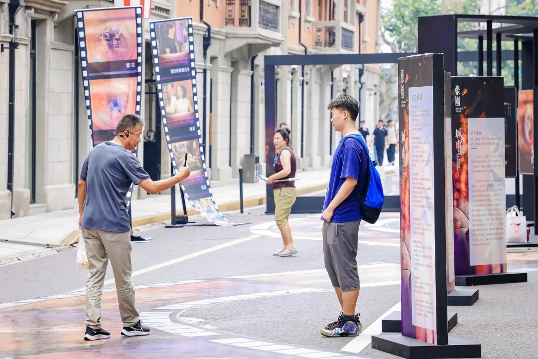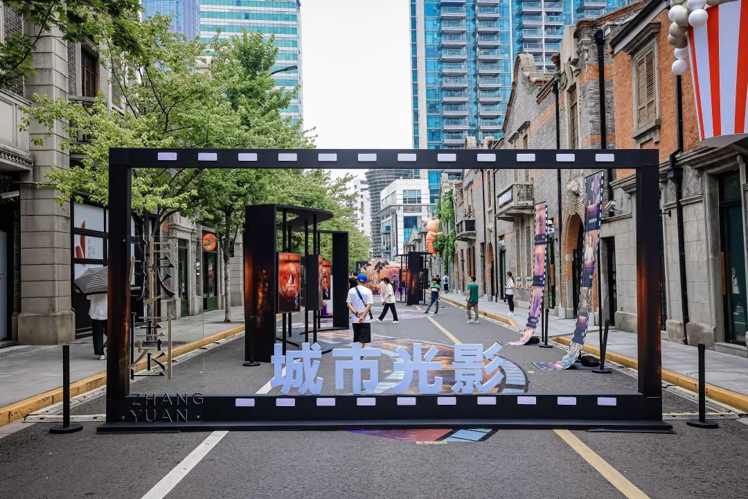 6月22日、23日,张园联手美琪大戏院,在茂名北路限时步行街推出“城市·光影”时代光影艺术展,让潮流走进生活,让艺术点亮建筑,陪伴市民游客一起在电影中回忆,在回忆里追光。