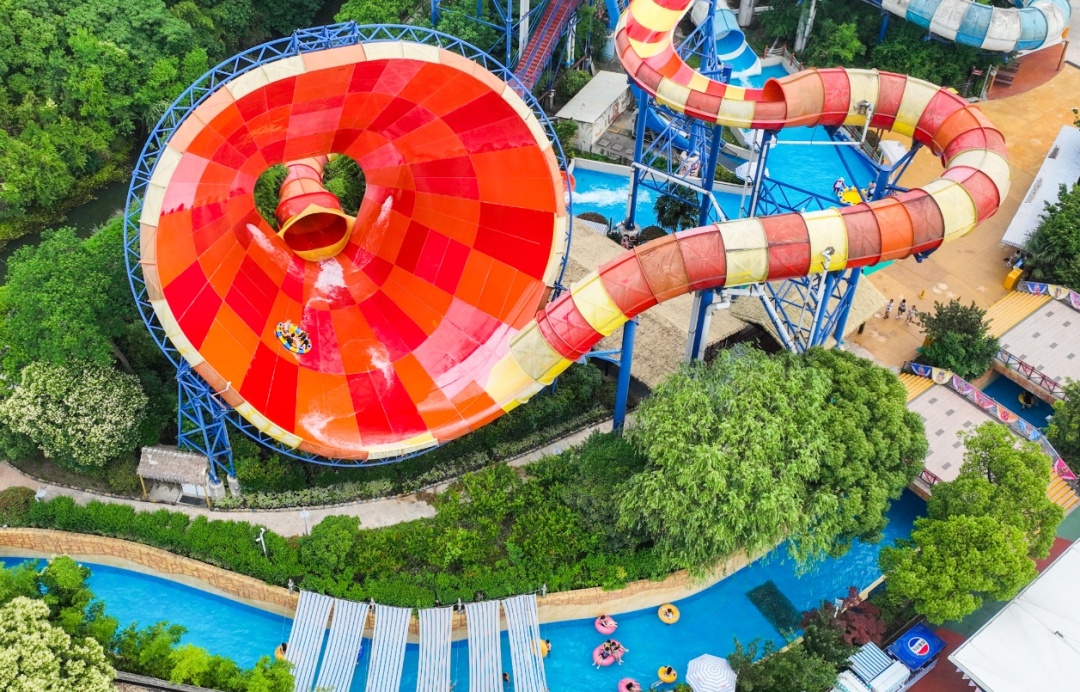玛雅水寨、大喇叭、懒人河……20万平方米超大玩水区域里,40余个大型水上项目已全面升级回归。夏至(21日)到,暑气生,不少市民游客纷纷走进水上乐园,戏水消暑,乐享清凉。