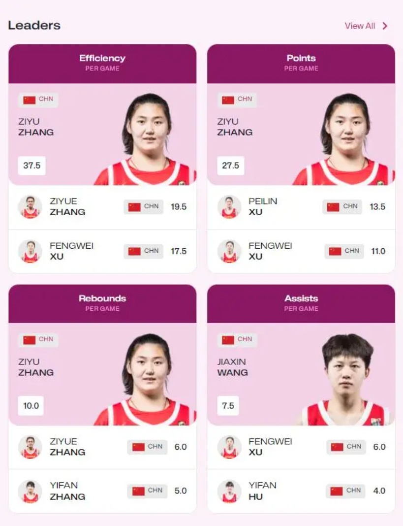 此前,中国队先后以109:50、90:68战胜印度尼西亚队和新西兰队。净身高达到2米24的17岁小将张子宇被球迷誉为“女版姚明”,本次比赛也是她首次代表国家队参加洲际比赛。