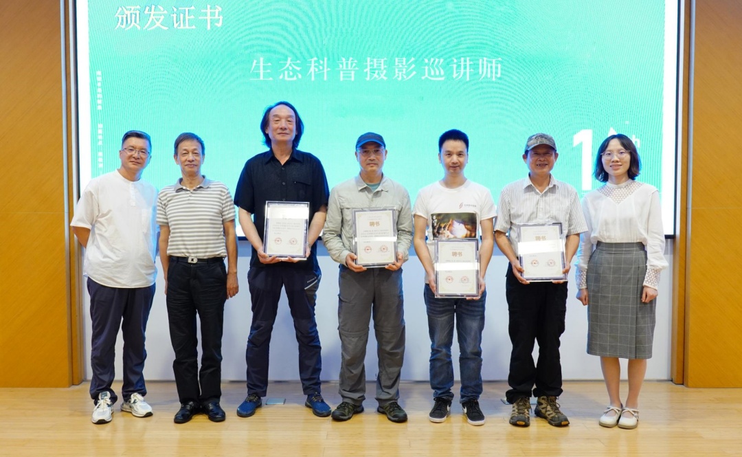 活动尾声,上海市科普作家协会第九、十届秘书长江世亮,上海市科普作家协会副理事长、上海自然博物馆展教中心教育研发部部长刘楠,共同为顾云芳、周勇、孙孝明、施斌四位老师颁发上海市科普作家协会科普摄影美术专委会“生态科普摄影巡讲师”聘书。