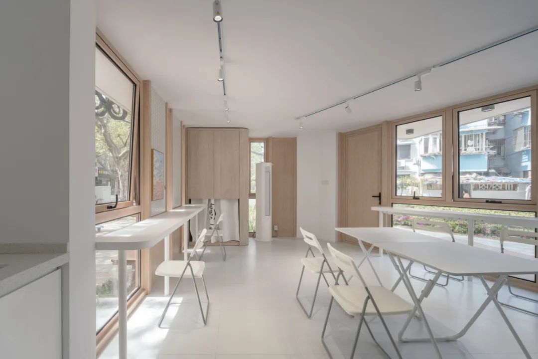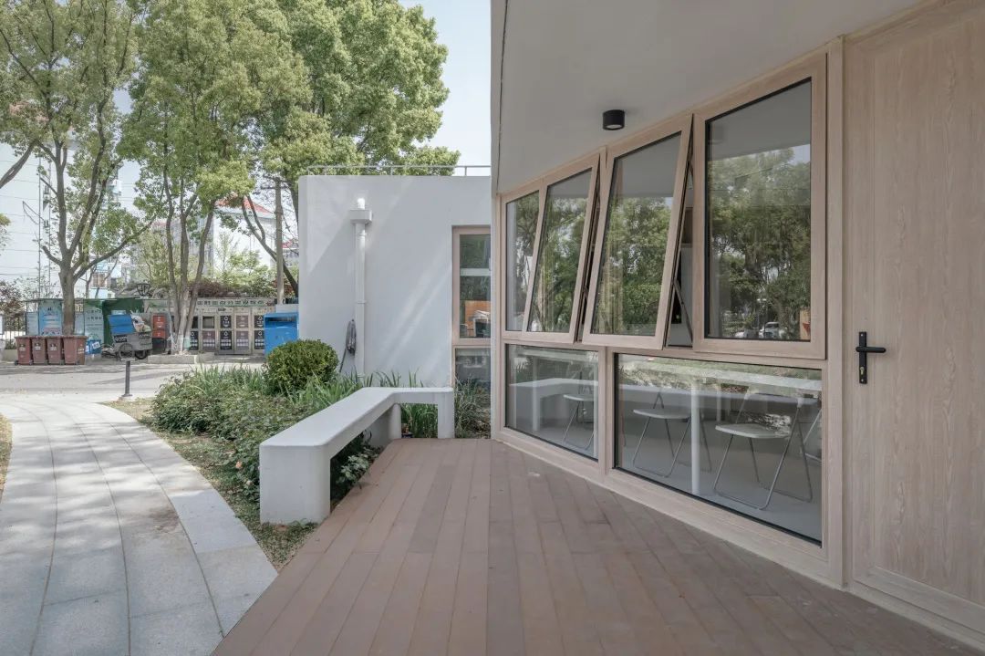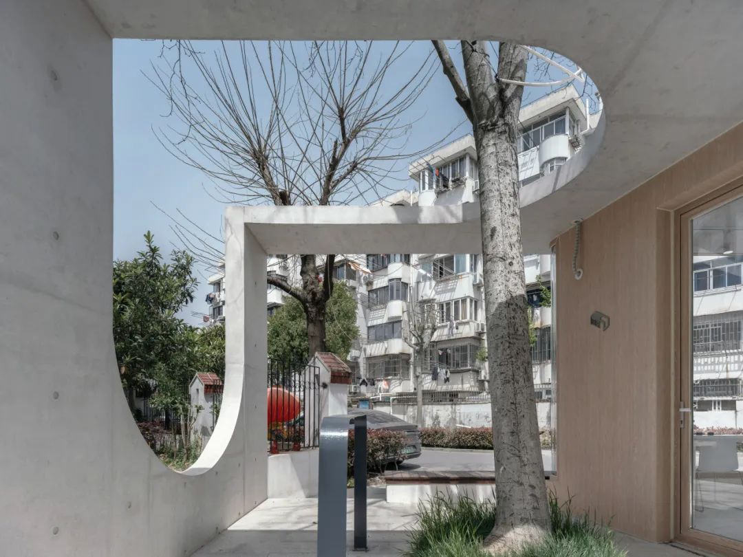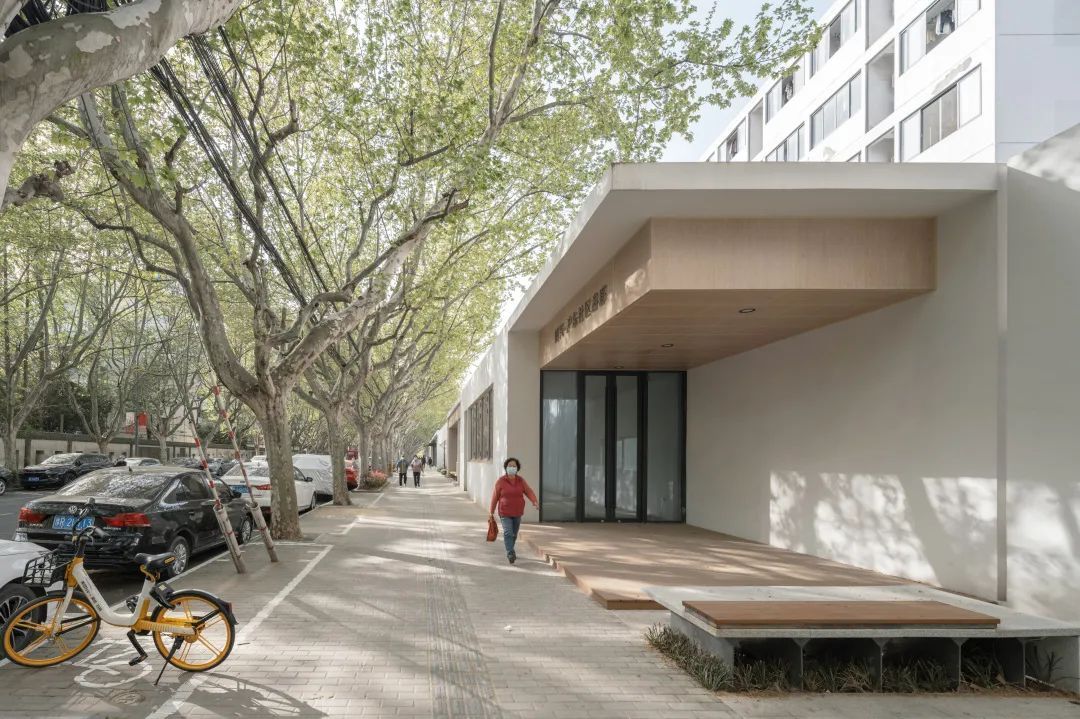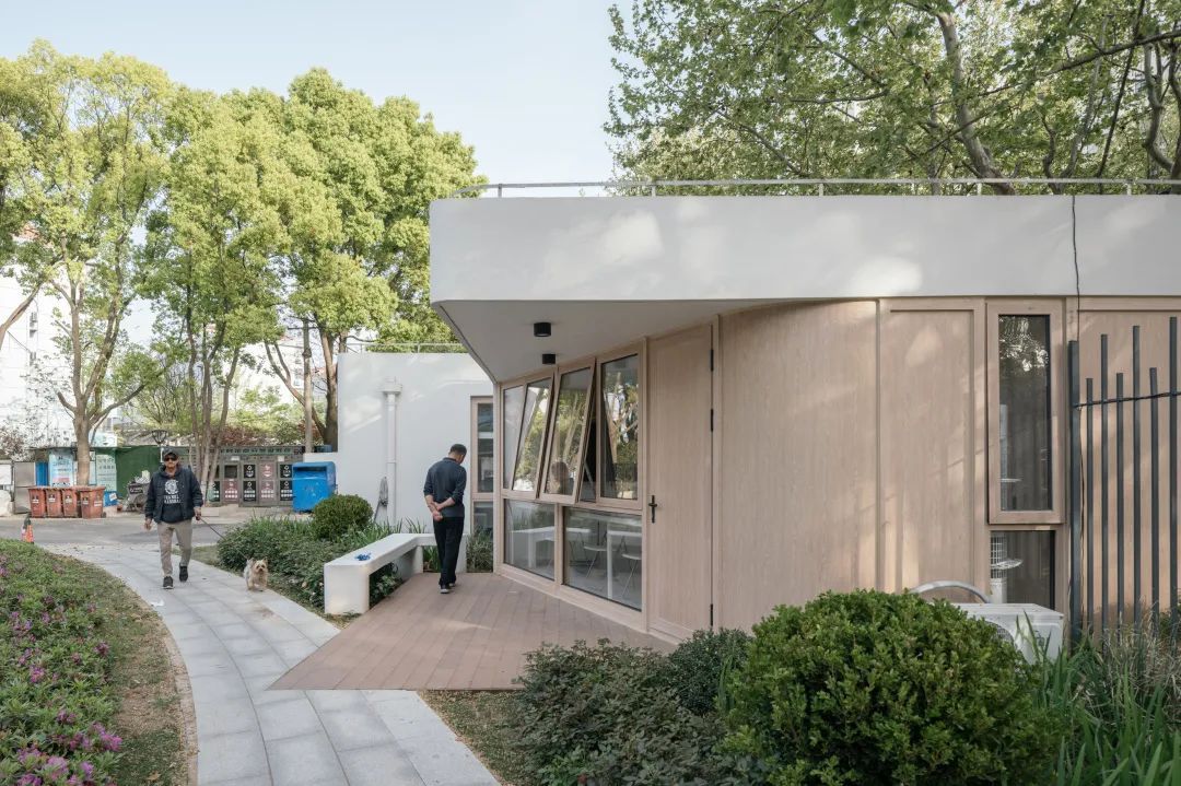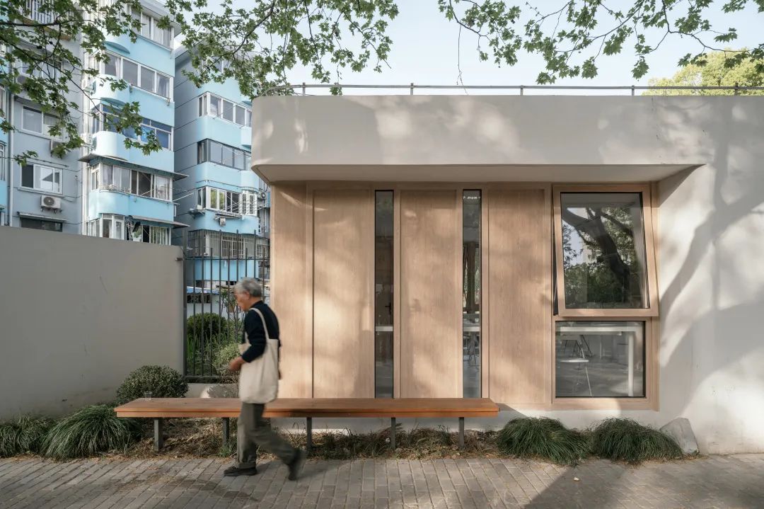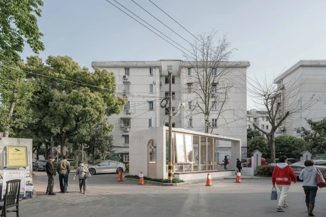沪东新村的系列更新起点是设计团队于2020年5月在向东新村创作的社区之家“向东暖亭”[1]。在建筑面积仅70平方米的有限建筑空间里,通过创新的结构设计为使用者争取了更大、更完整的空间体验,成为尺度宜人、亲切温暖的公共生活空间。