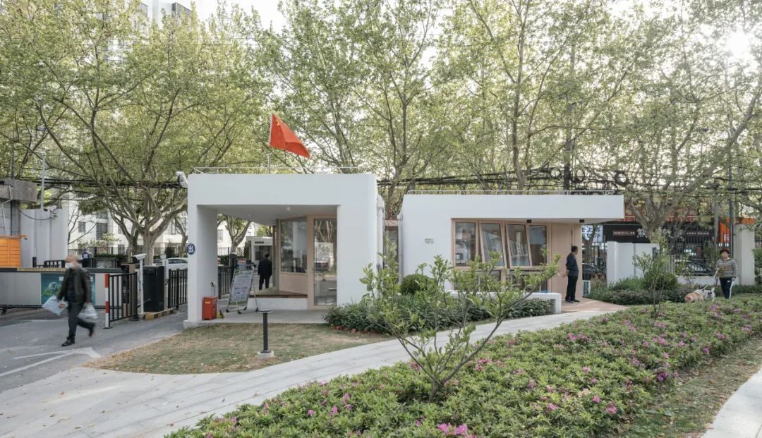 “沪东实验”不仅关注部分封闭界面的有效打开、社区公益职能与公共服务内容的植入、相邻杂乱空间的梳理,更关注各更新点位“嵌入”日常生活的方式。在各点位的建筑、景观、小品、标识等公共空间要素设计上,采用更朴素简洁的、“去个体表现”的方式,将温暖、生动的公共生活与新旧风貌进行有机的编织与连结,织补并完善社区日常生活图景,实现在地“场所精神”[6]的延续与发展。