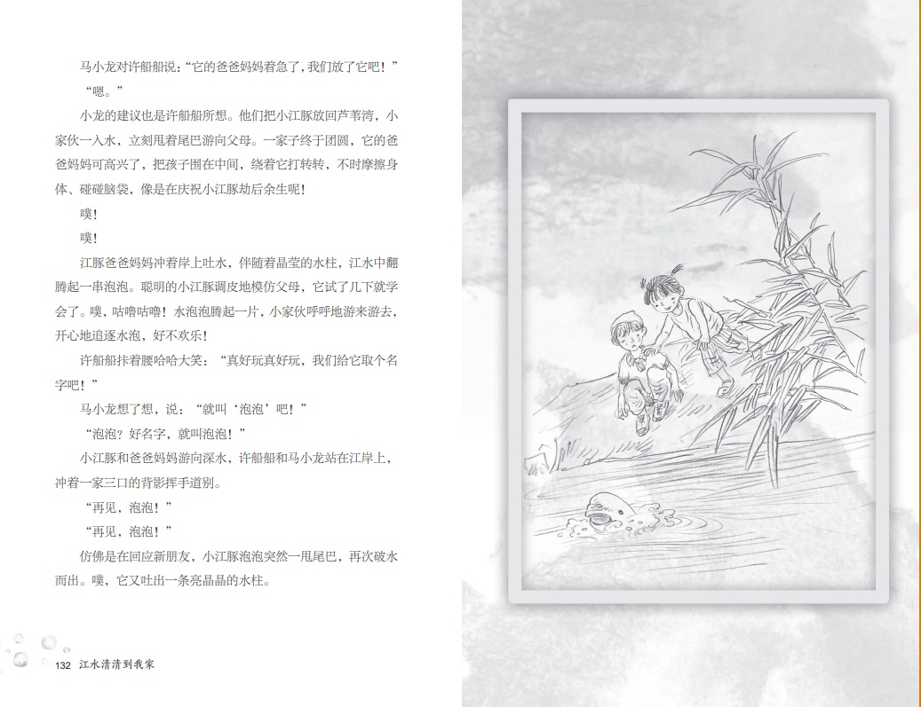 此外,作品还塑造了一系列着墨不多但十分鲜活的人物群像,如经常被爷爷许水生拒绝的当地生态综合整治工作组的刘组长、乐于助人的林老师、为江豚的生存环境而担忧的老专家等,这些人物的存在不仅丰富了作品的内容,也为孩子们提供了更多的思考空间。