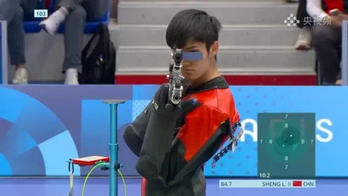 近半个小时的比赛,每次出现盛李豪的镜头,现场就响起阵阵欢呼;每一轮成绩公布,看到盛李豪排名第一,现场响起雷鸣般的掌声;当镜头切到盛李豪特写,解说员喊着“加油盛李豪”,现场观众也被点燃;而当盛李豪打出10.9环的成绩,欢呼声变成了尖叫声,有人甚至跳起来,边跳边挥舞手中的小红旗。