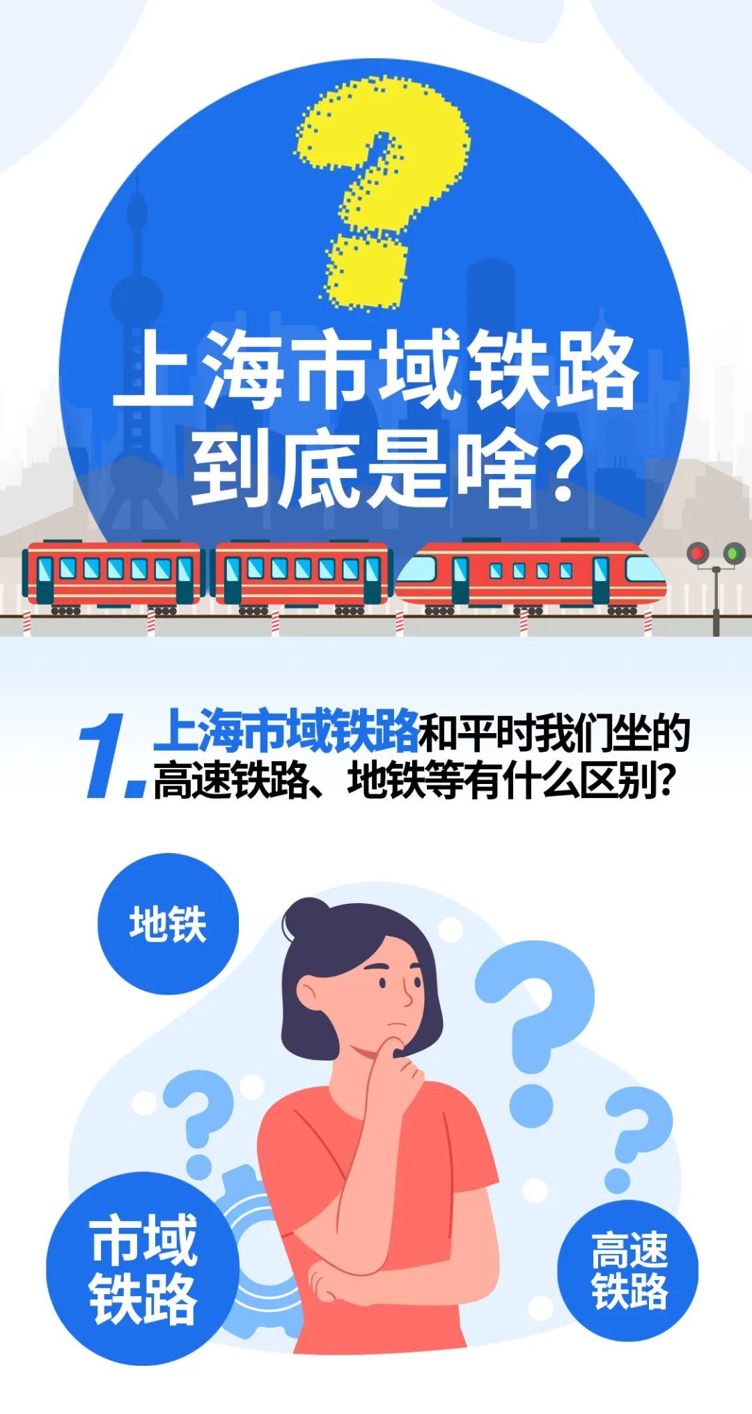 你知道上海市域铁路吗?它和高铁、地铁有何区别?上海市域铁路有哪些新技术和新亮点?它的发展和建设情况如何?未来又有哪些发展趋势?一图看懂↓