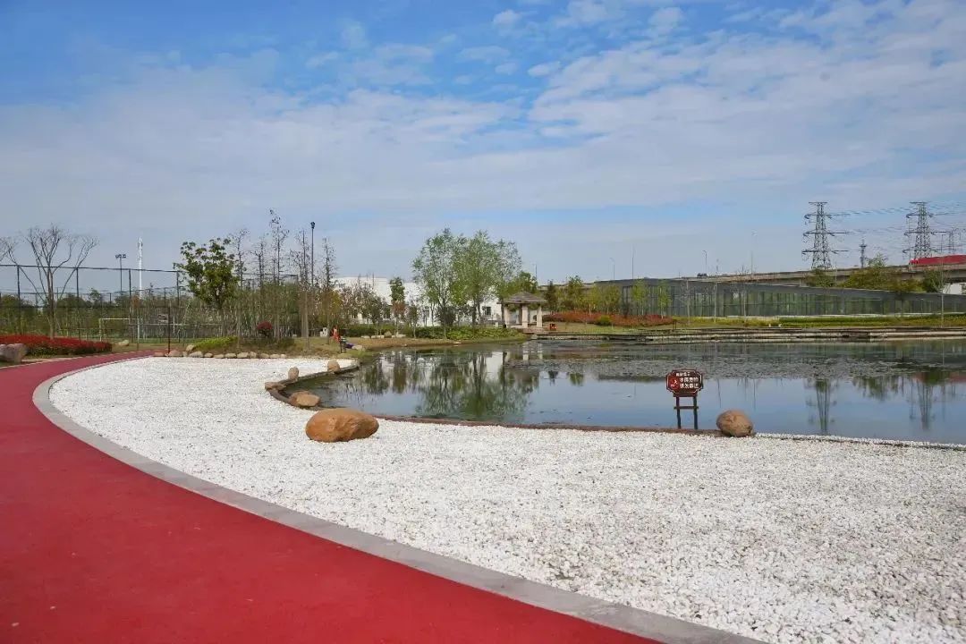 园内健身步道、儿童乐园、足球场、科普馆等健身、娱乐、文化活动场所一应俱全。健身步道设置了1公里内圈跑道和2公里外圈跑道,喜欢跑步的小伙伴可以在这里运动。此外,还设有儿童乐园,孩子们可以在这里尽情玩耍。