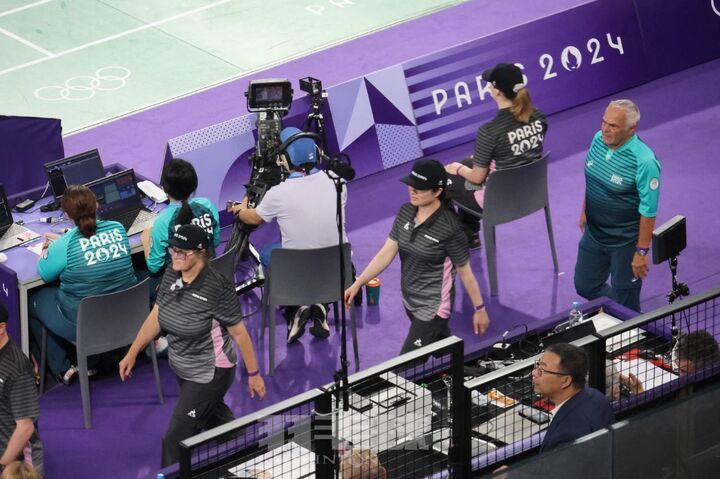 据了解,60位司线员里有40位是法国本土裁判员,另外20位则是世界羽联选派的国际司线,中国的施平就是其中一位。从去年得知获得参加巴黎奥运会的机会,到7月27日正式戴上帽子,踏上拉夏贝尔门场馆内的赛场,这期间施平参加了世界羽联组织的多次培训学习,自己也有意识地在英语口语上多下功夫,以便在巴黎期间和各国裁判员有更好的沟通和交流。在和不同裁判员的合作与交流中,施平在司线员岗位上体会到更多国际大赛的魅力,也在工作中得到提升。
