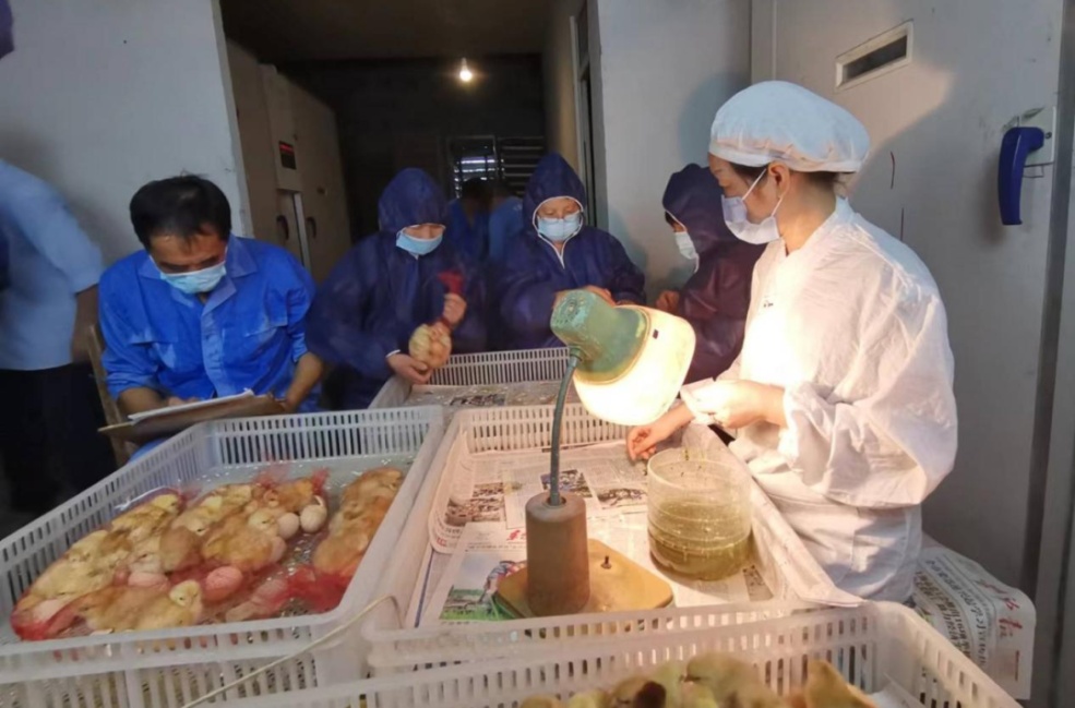 走进鸡舍,一排排标准化鸡笼整齐排列,一只只浦东三黄鸡正在吃食。在种鸡孵化车间,工人们正忙着挑选种蛋、查看孵化情况、分拣雏鸡。车间内一只只活蹦乱跳、憨态可掬的小鸡苗叽叽喳喳地叫着。