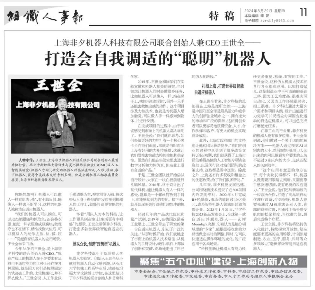 怀着“用以人为本的科技,让工作更具创造性,让生活更有幸福感”的愿景,王世全带领非夕科技,打造出多款世界级智能自适应机器人。