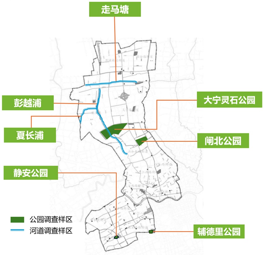 静安区生物多样性调查主要样区分布图