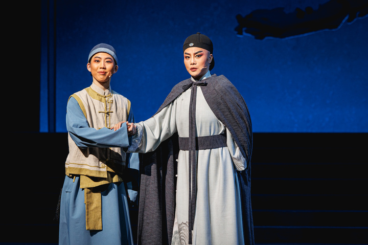 求净,让人物美起来。艺术的美感,是演员所追求的,也是观众所需求的。在唱腔、舞美等设计方面,我们充分考虑了现代审美的特点,以简求净,以净取美。在一些重要的场次和环节,我们大胆运用了清唱的方式,以这种细腻的处理方式,回到戏曲的本体。比如第一场,李方膺即将赴任,在跟郑板桥等一群文人墨客一起谈书论画时,这时的李方膺就是一个高洁、清明、不卑不亢的书生,重情重义,富有生活气息。所以,唱腔和表演就按照这个方向进入。