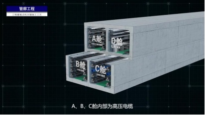 综合管廊为4舱矩形断面,a、b、c为电力舱,d为综合舱