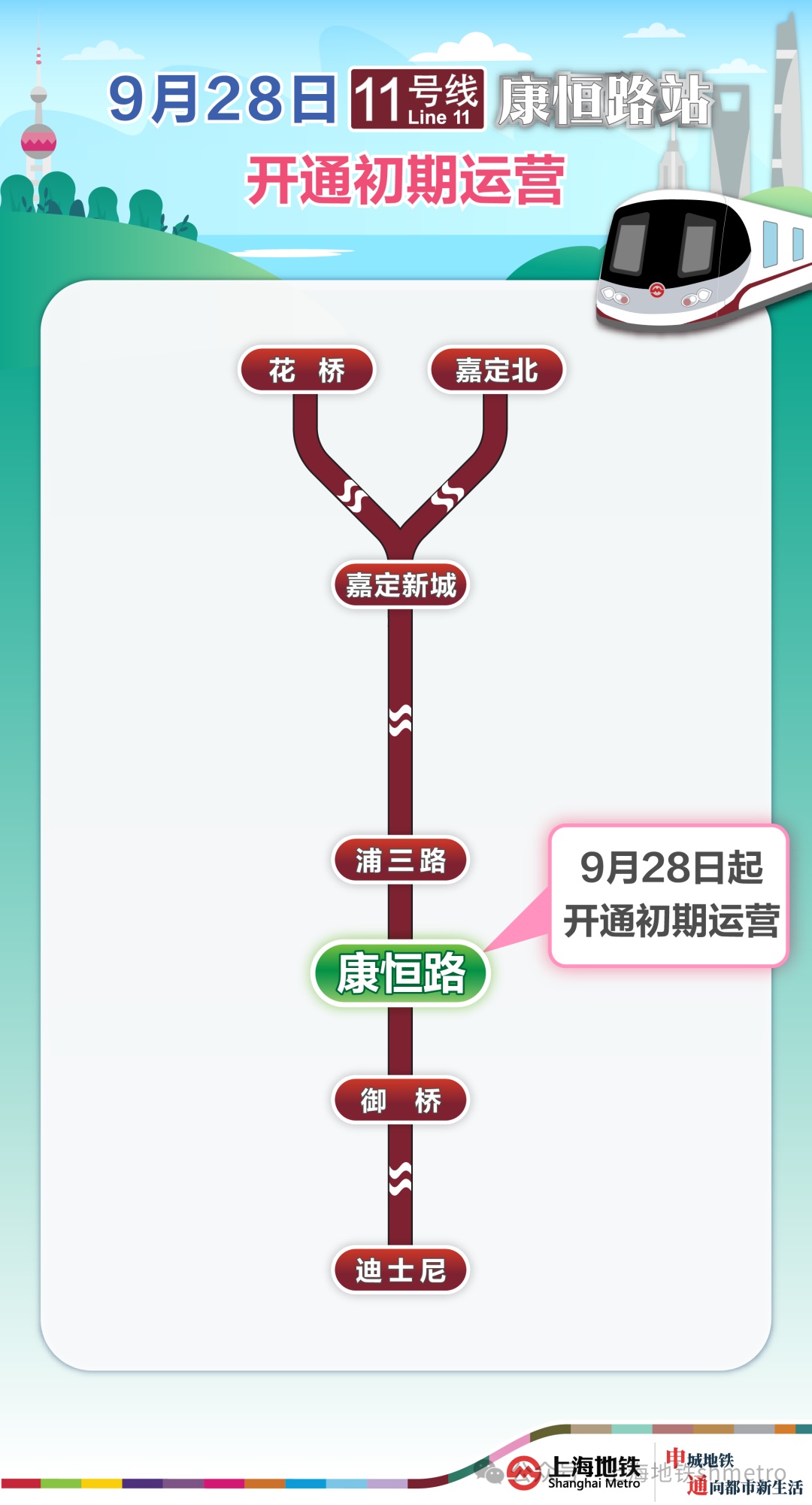 近日,上海轨道交通11号线康恒路站顺利通过初期运营前的安全评估,具备初期运营条件。经市政府批准,计划于9月28日起开通初期运营,服务市民乘客。至此,11号线全程增至40站,申城轨道交通全网车站增至509座。目前,工程建设和运营单位正进一步开展综合联动调试及各项演练,为新站正式投用做好准备。详见↓