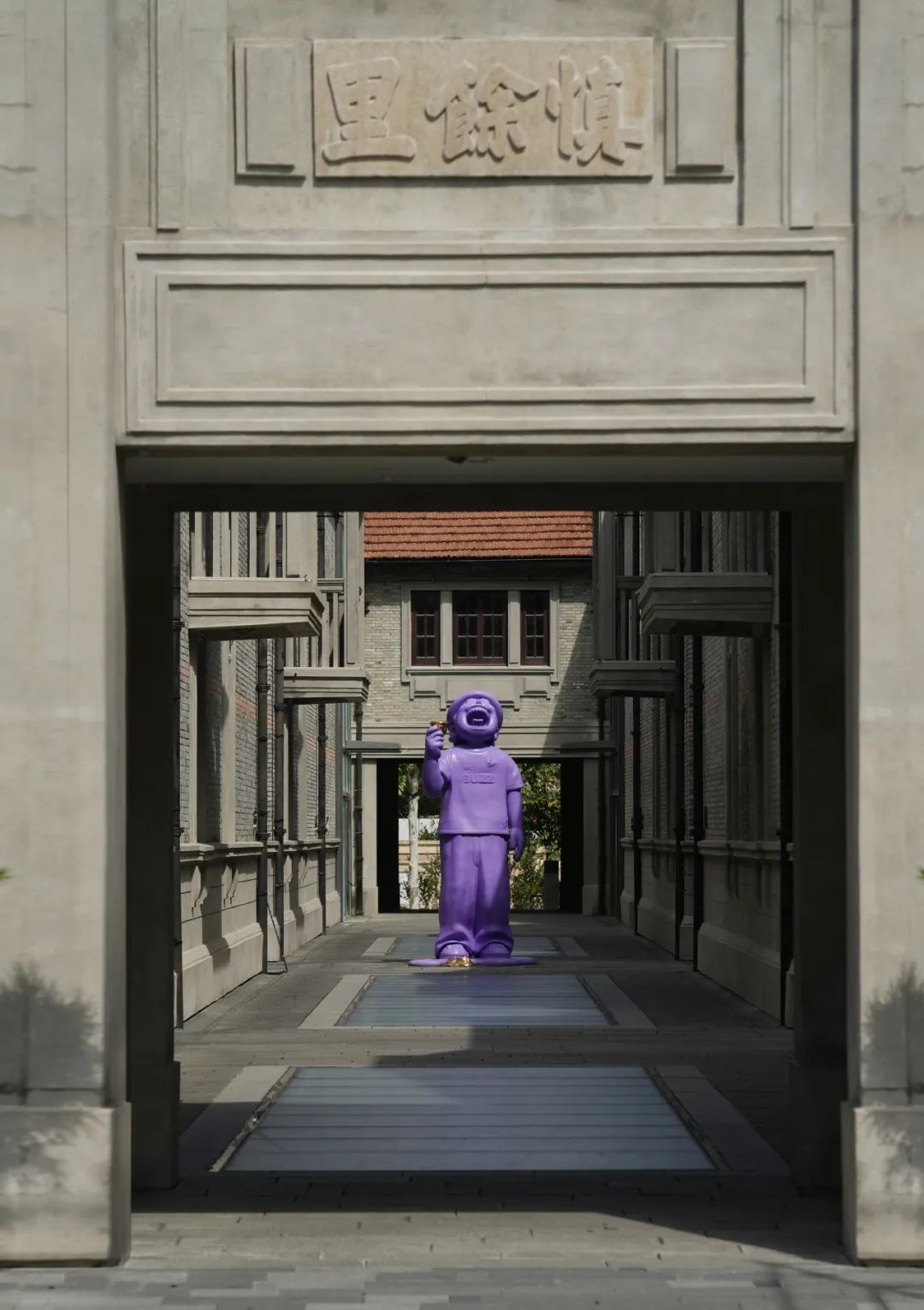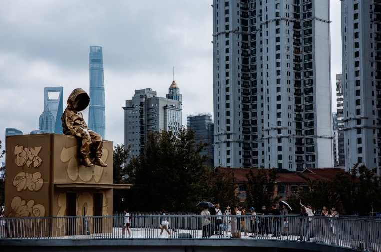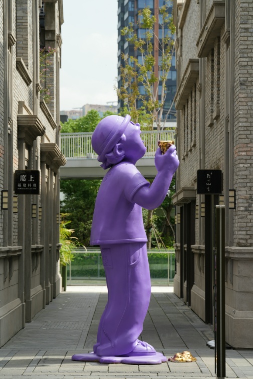 石库门建筑群慎余里的主弄内,也迎来了一件全新的巨型艺术雕塑。一位身高3.5米的《mr.buzz》先生,以诙谐的视角和搞怪的形态,仰望着慎余里的建筑与流动不息的故事。潮流艺术家韩乙田将他对于生活细微末节的感受具象化再放大化,以无聊状态探索⾃我存在,并通过《mr.buzz》艺术雕塑的塑造,引发观众对自身存在的思考。