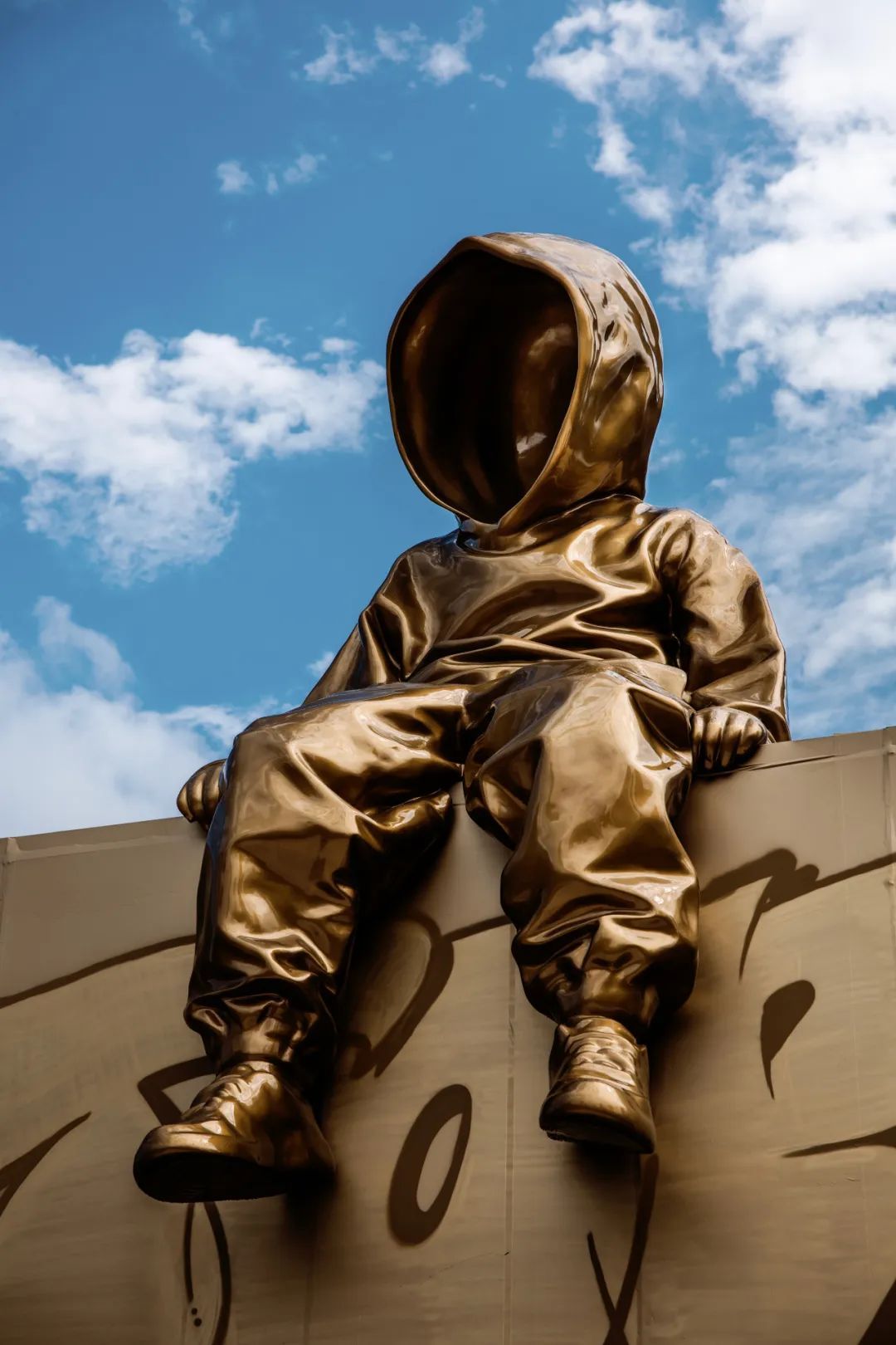 高达5米的《孩子王》落座苏河湾天桥,这件没有面孔的卫衣人作品由当代青年艺术家黄玉龙huang yulong创作,结合了涂鸦艺术,街头艺术感十足。《孩子王》以第一人称的视角与上海对话,充斥着不羁、叛逆的个性张力,正是艺术家对个体生命独立、自由、叛逆、无畏的表达。这也是how昊美术馆走出艺术馆、走向艺术栖息地苏州河畔,建立艺术家、艺术机构与城市公共空间的交流与展示。