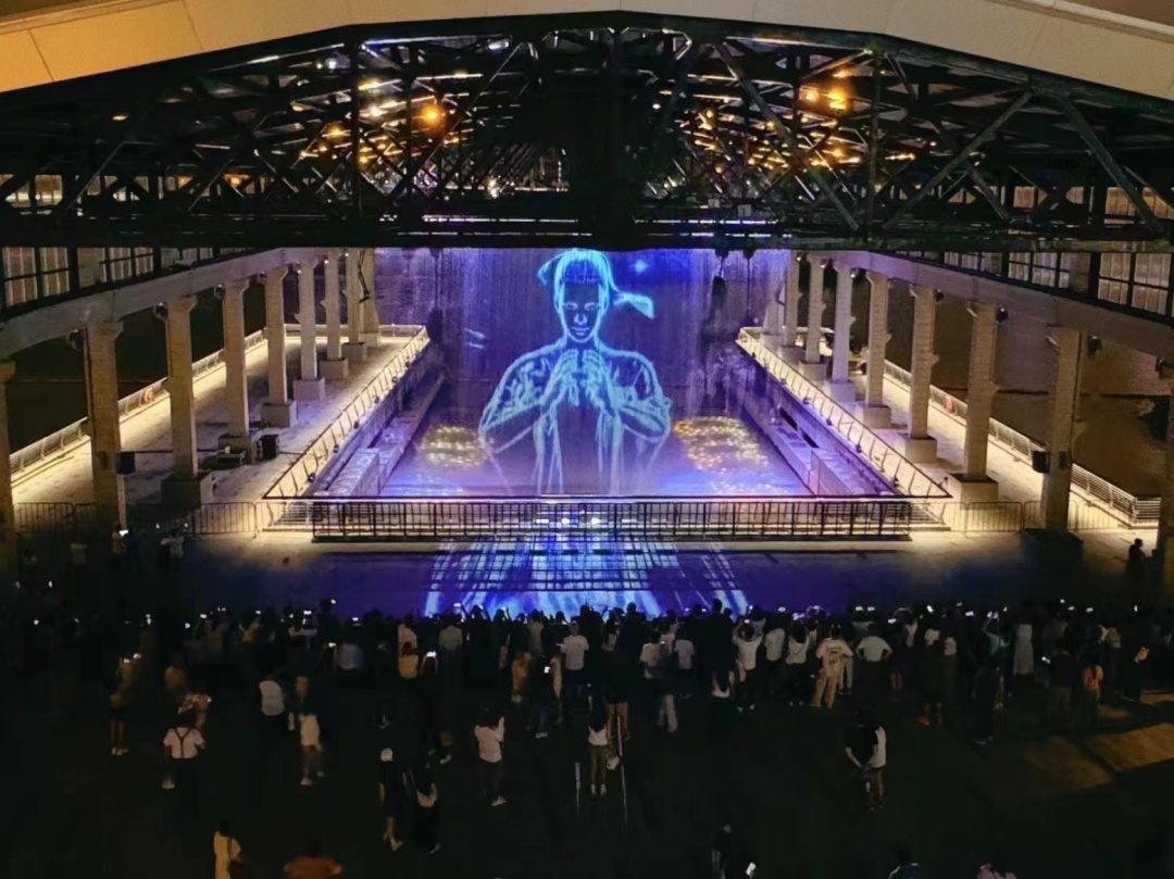 记者看到,夜幕刚刚降临,船坞前的观影台上就坐满了观众,习习江风带来的凉意也吹不散他们的热情。这里的《时光回廊》水帘投影秀,联合上海人工智能实验室的独家ip形象“书生”,带领大家踏上一场跨越虚实界限的奇妙之旅。