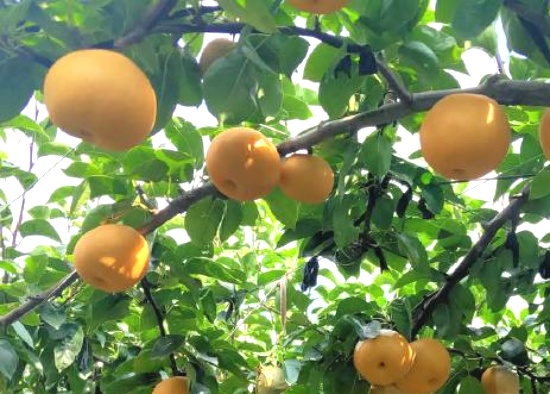 秋月梨因果形漂亮如满月而得名。梨果扁圆形,果形端正,果皮黄褐色或浅黄褐色,表面有不规则的斑点。果皮有光泽,果肉乳白色,肉质细、味道清甜适中,口感清香爽口。秋月梨的平均单果重450克左右,最大可达1000克左右。