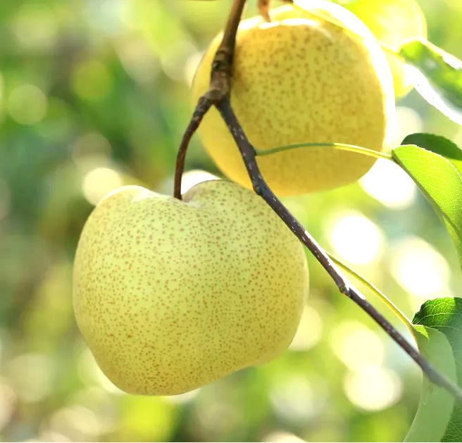 鸭梨又名北京白梨,原产于北京门头沟。果实呈扁圆形,果汁多,味酸甜,香味浓。