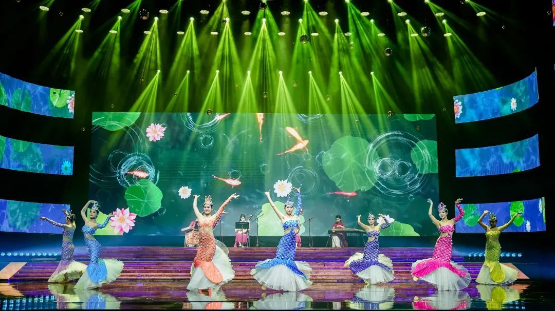 开幕演出精彩纷呈,有被称为“中华一绝”的非遗舞蹈《奉贤滚灯》,有获得上海市群文新人新作展评展演优秀新作奖的经典室内弹拨乐《鱼戏》、第十五届群星奖音乐获奖作品《古镇音画》,有著名歌唱家杨学进倾情演绎的《好一朵茉莉花》,还有京津沪渝声乐技能大赛获奖选手代表和奉贤区市民“歌舞之星”大赛获奖选手代表带来的精彩演绎,最后在 全体演员与现场观众一起高唱《歌唱祖国》中拉下帷幕。开幕式以四地联动的方式展现文化的包容魅力和传统特色,推动了各地区艺术文化交流,彰显新时代奉贤精神,坚定文化自信自强。