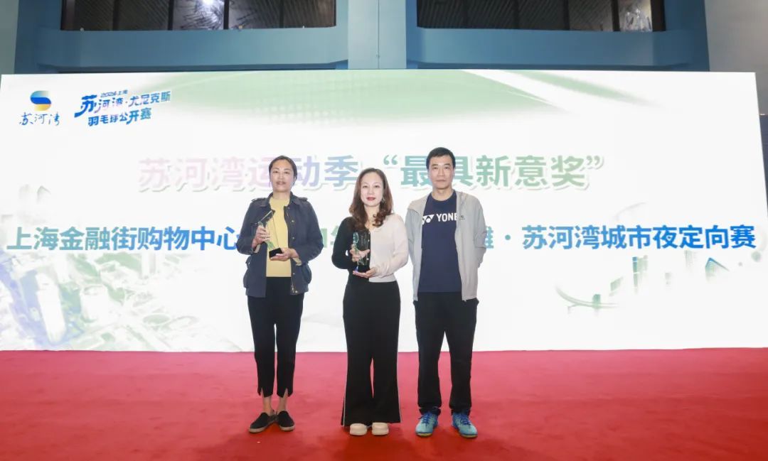 随后,现场对十家在“苏河湾运动季”有突出表现和贡献的企业、商圈和社团进行了颁奖。其中,尤尼克斯(上海)体育用品有限公司、上海赛艇公开赛荣获“苏河湾运动季最佳品牌奖”;moho mall、cycling!suhewan骑行社群平台荣获“苏河湾运动季最佳潮流奖”;凯德星贸、嘉里合集荣获“苏河湾运动季最佳组织奖”;上海金融街购物中心、2024年上海环外滩·苏河湾城市夜定向赛荣获“苏河湾运动季最具新意奖”;上海苏河湾万象天地、darkrunners跑团荣获“苏河湾运动季最具人气奖”。