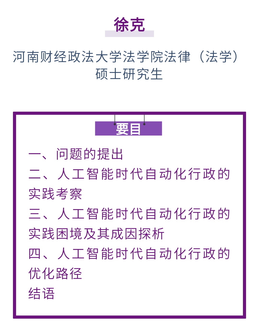 近年来,我国学者对自动化行政研究成果颇丰,主要围绕自动化行政的内涵、适用范围、等级、法律风险与规制。其中,关于自动化行政的内涵。马颜昕认为自动化行政为人工智能技术与行政管理的有机结合,根据人工智能自动化系统在行政管理领域发挥的不同作用,达到部分行政自动化或全部行政自动化程度。关于自动化行政的适用范围,胡敏洁认为,人工智能可应用于政务数据收集与处理、无需裁量或听证而直接决策、行政活动数据化的情形。关于自动化行政的法律风险与规制,张恩典认为人工智能算法权力的泛化使得自动化行政渐有预先设定的算法程序取代法律规定的趋势,因而导致依法行政原则日渐式微、相对人陈述、申辩权等程序性权利被悬置。基于此,提出合理限制自动化行政的适用范围、赋予行政相对人算法解释权等应对思路。本文归纳了自动化行政在实际运行中的法律风险样态并提出行之有效的规制路径。