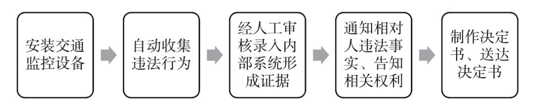 正当程序制度源于英国的“自然正义”原则,该原则主张任何人在受到不利决定前均有权表达意见来维护自身权益。行政相对人陈述、申辩权的充分行使是对行政机关依法行政的监督,在一定程度上可以制约行政权力的恣意与专横。在自动化行政的具体应用中,相对人陈述、申辩的权力遭到了不同程度的剥夺。以交通领域的非现场行政执法为例,工作流程见图1。