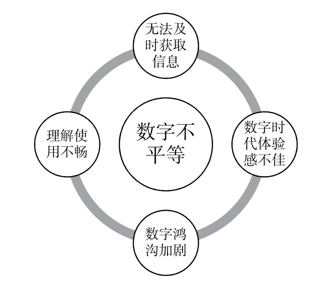 自动化决策、自动化审批、自动化预测等高效行政管理模式的推广使得数字弱势群体的数字权利被侵犯,“数字鸿沟”的客观差距导致信息获取能力的不平等与信息资源获取的差异性,形成了算法上的不平等。但是,自动化行政的正面效应使得政府给予其高度信任,潜在的负面效应却被忽视。根据《数字中国发展报告(2020年)》统计数据显示,2020年我国电子社保卡共签发3.6亿张。此数据尽管体现了数字化时代为政府管理带来了巨大便利,但也应当注意到仍然有很多农村地区存在老年人使用智能手机进行社保卡认证存在困难的现状。有些地区,不考虑老年人的文化水平强迫公众必须下载政务官方应用、加入微信群,使得这一弱势群体无法及时获取准确信息导致权利受损。无法及时获取信息、理解使用不畅、数字时代体验感不佳等障碍进一步加剧了“数字鸿沟”。长此以往,弱势群体的数字权益将无法得到有效保障(见图2)。人工智能时代的自动化行政作为一种现代科技,当其与行政管理相结合时,会融入市民生活的方方面面,由此而产生的社会效益与法律效益成为关注的重点。