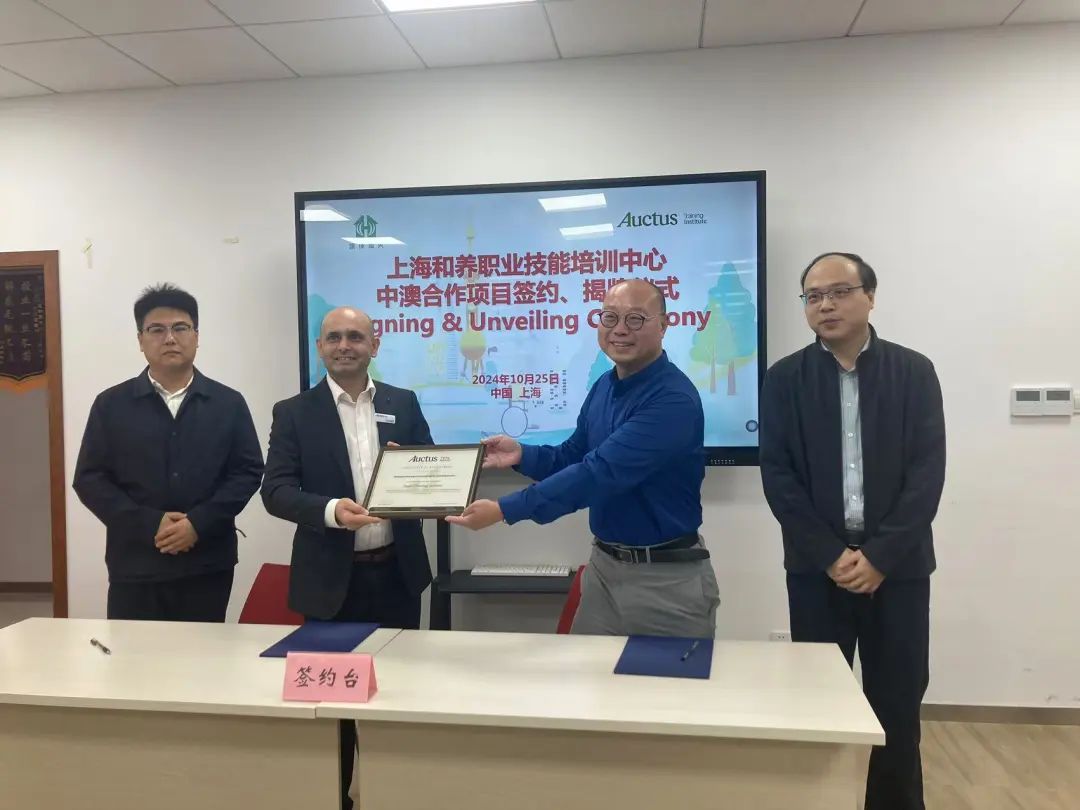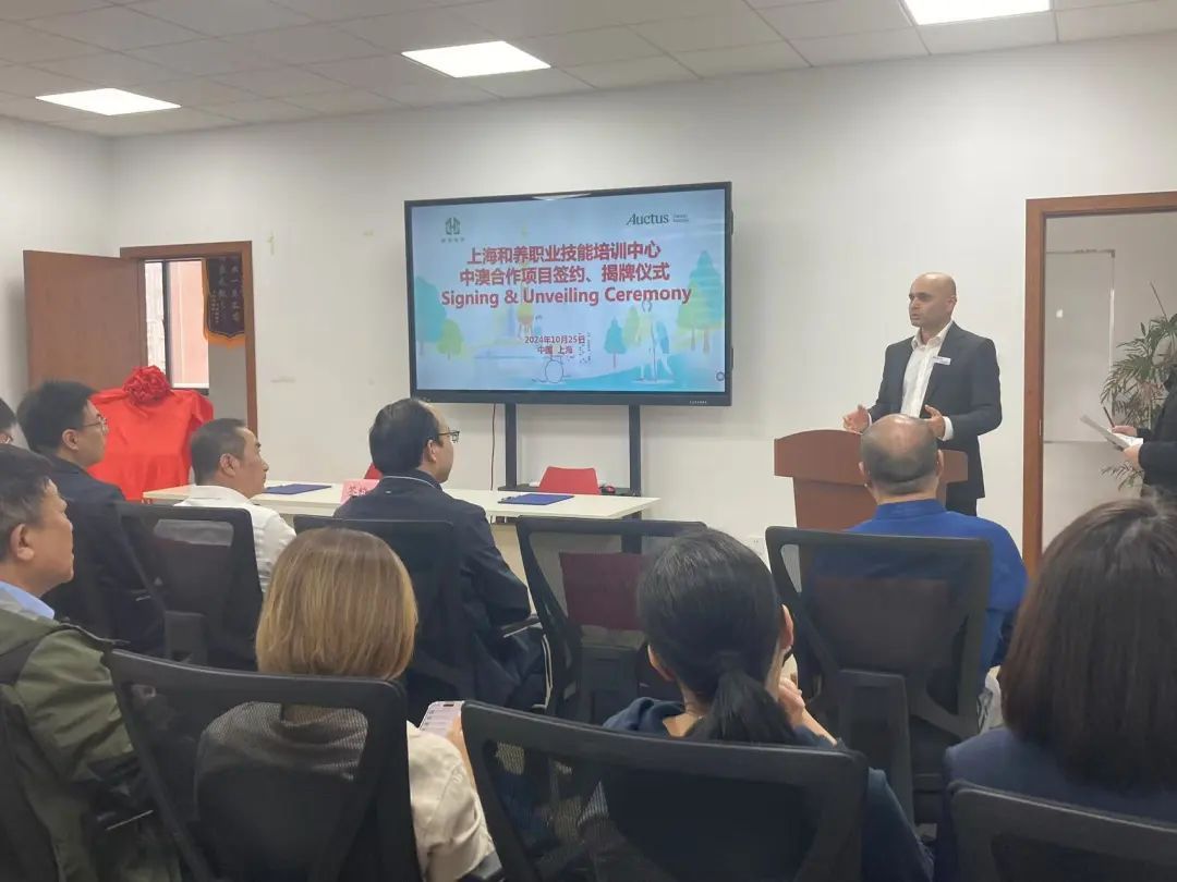 10月25日,区属国企下属护理员专业培训机构——上海和养职业技能培训中心与澳大利亚auctus护理专业培训学校举行签约、揭牌仪式,宣布启动养老护理员专项技能培训合作项目,为社会输送为老服务高质量人才。市养老协会企业处、区民政养老发展中心、区属国企凯成公司相关负责人参加。