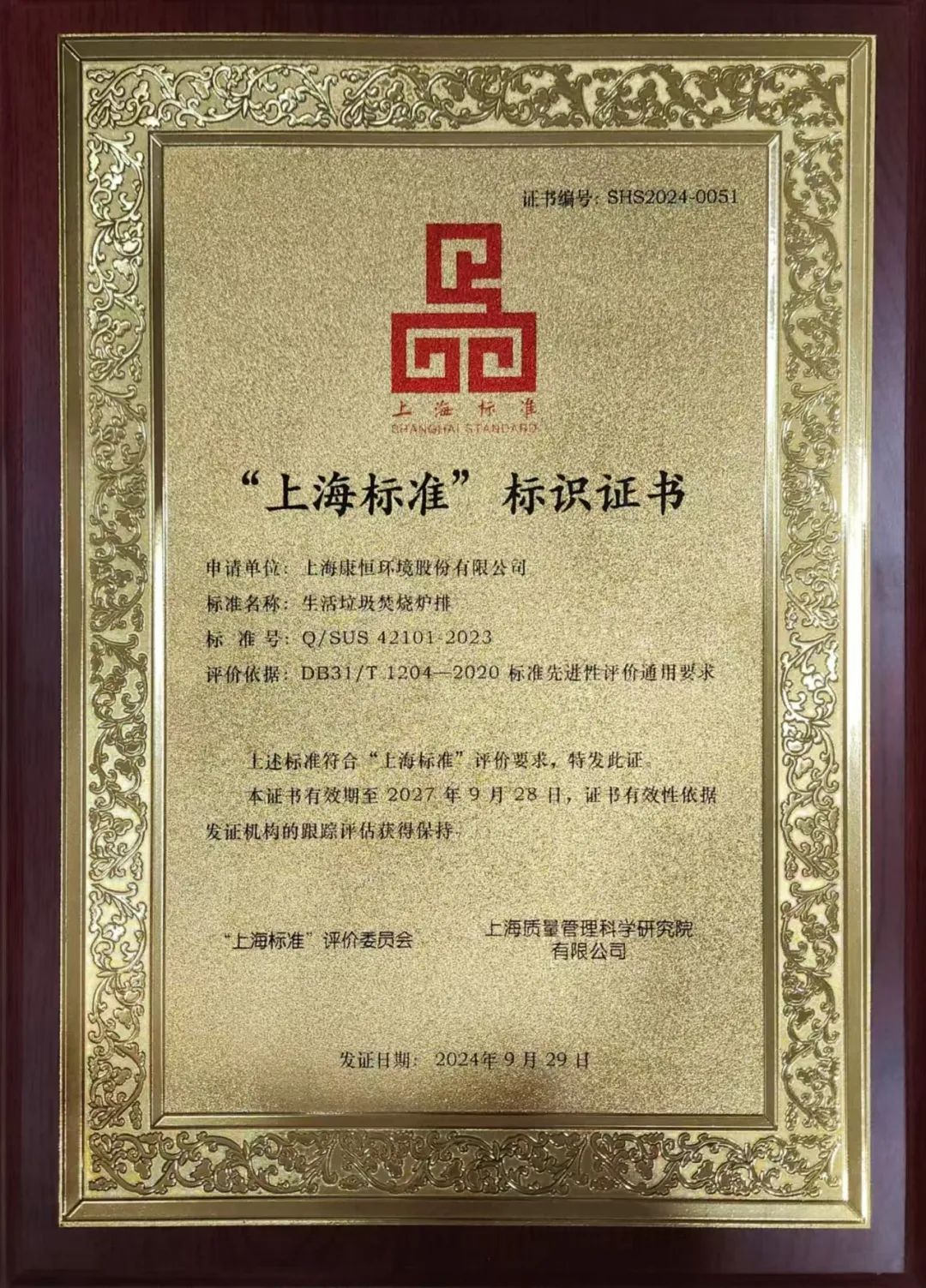 10月29日,上海市举行2024年“世界标准日”主题活动,集中展示和发布了一批2024年度本市标准化服务经济社会高质量发展的优秀成果,其中来自青浦的上海金发科技科技发展有限公司,荣获上海市标准化创新中心(生态高分子材料);上海康恒环境股份有限公司的《生活垃圾焚烧炉排》企业标准荣获“上海标准”及上海市标准化试点优秀案例两项荣誉。