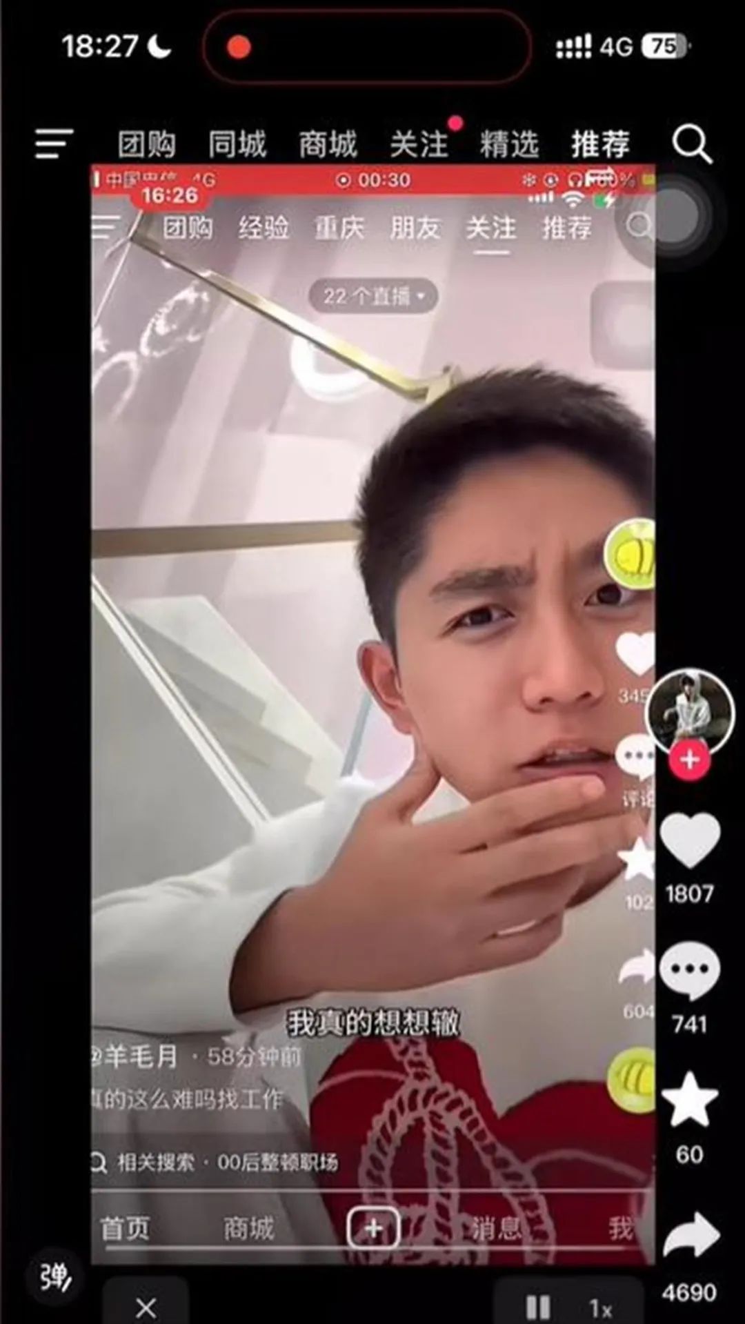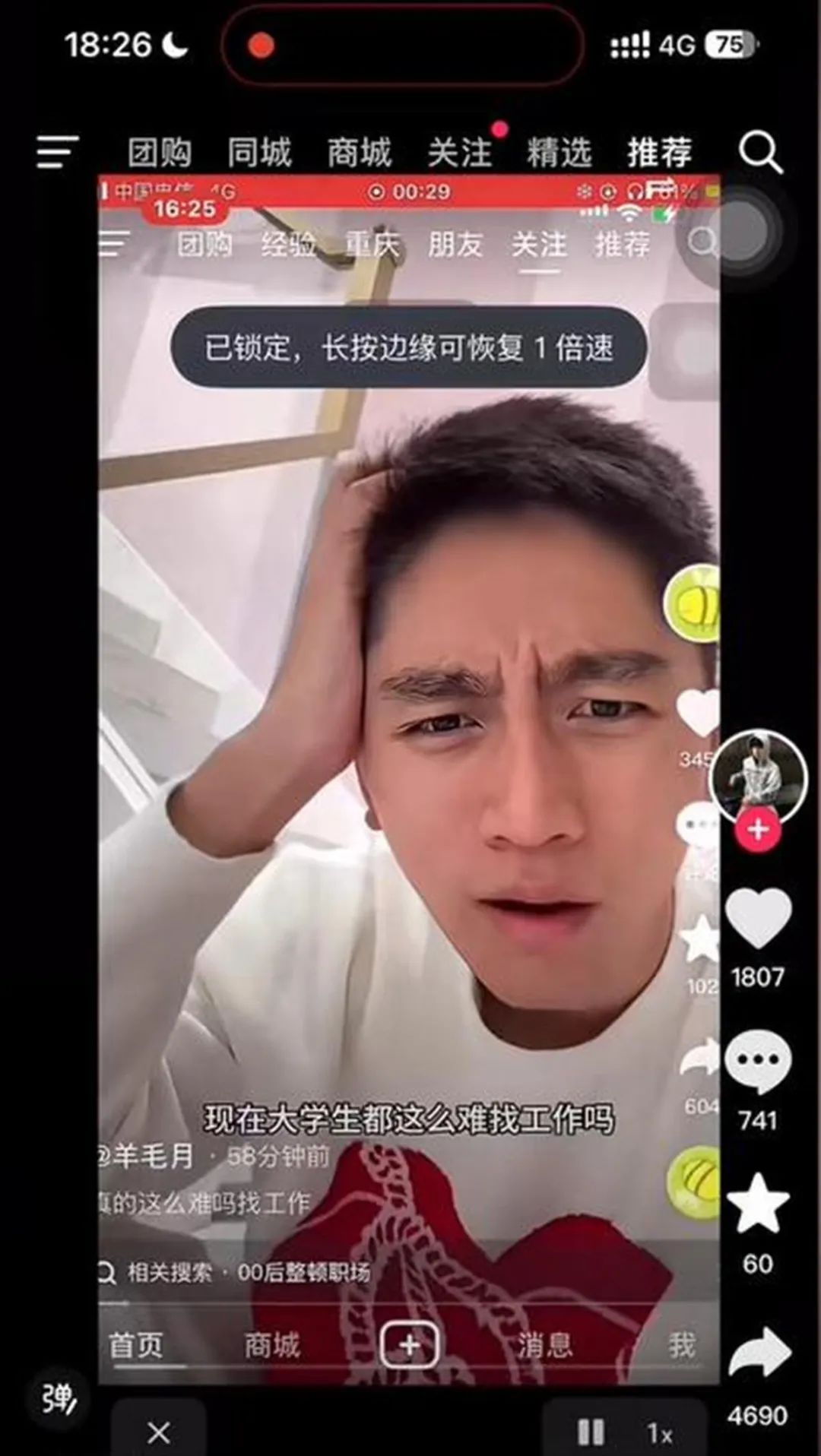 网友留存的录屏中,这条吐槽视频的文案为“真的这么难吗找工作”。视频里,“羊毛月”面对镜头发出疑问,现在大学生都这么难找工作吗?