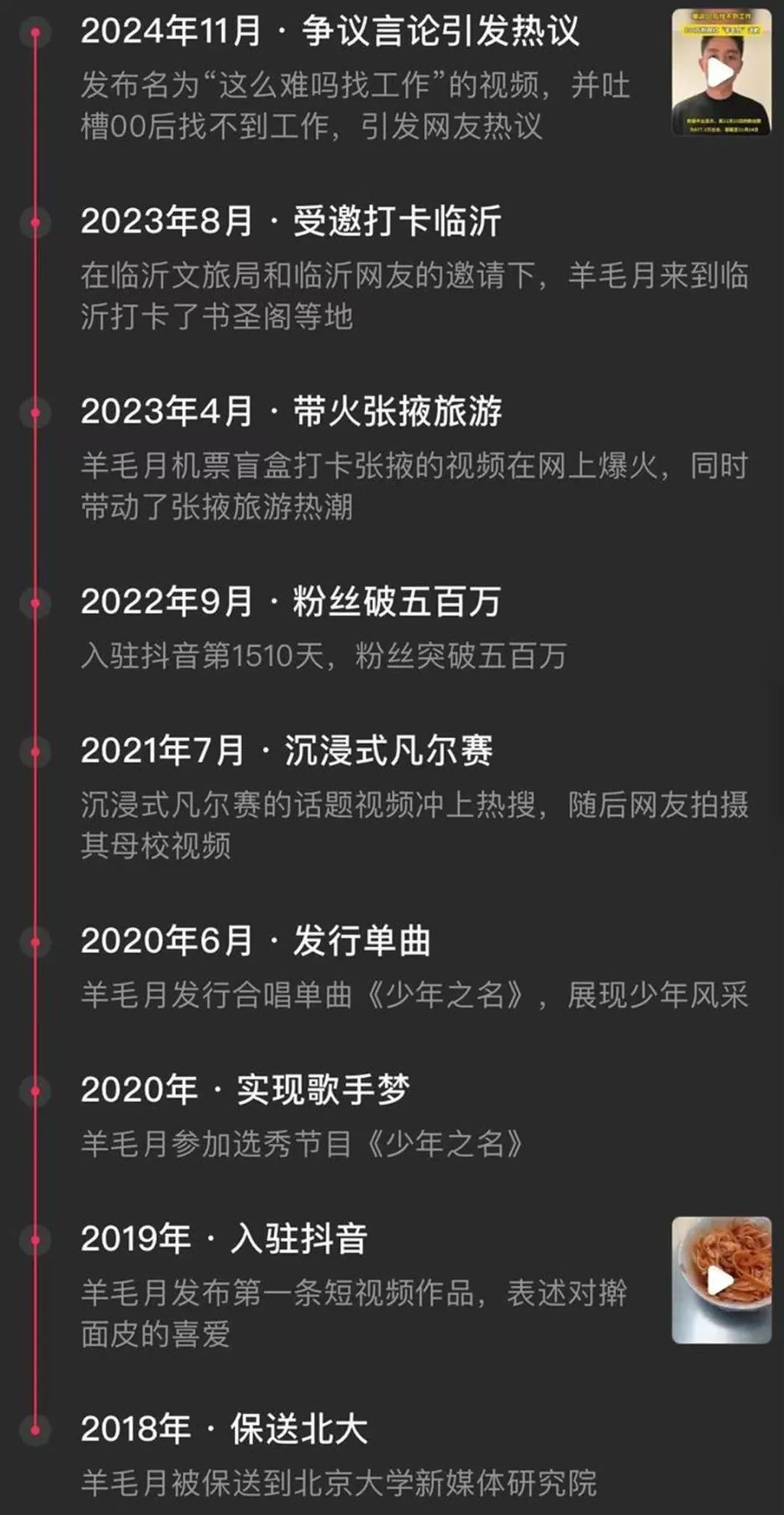 随着“翻车”事件越演越烈,“羊毛月”的相关信息和过往表现也被“扒”了出来。