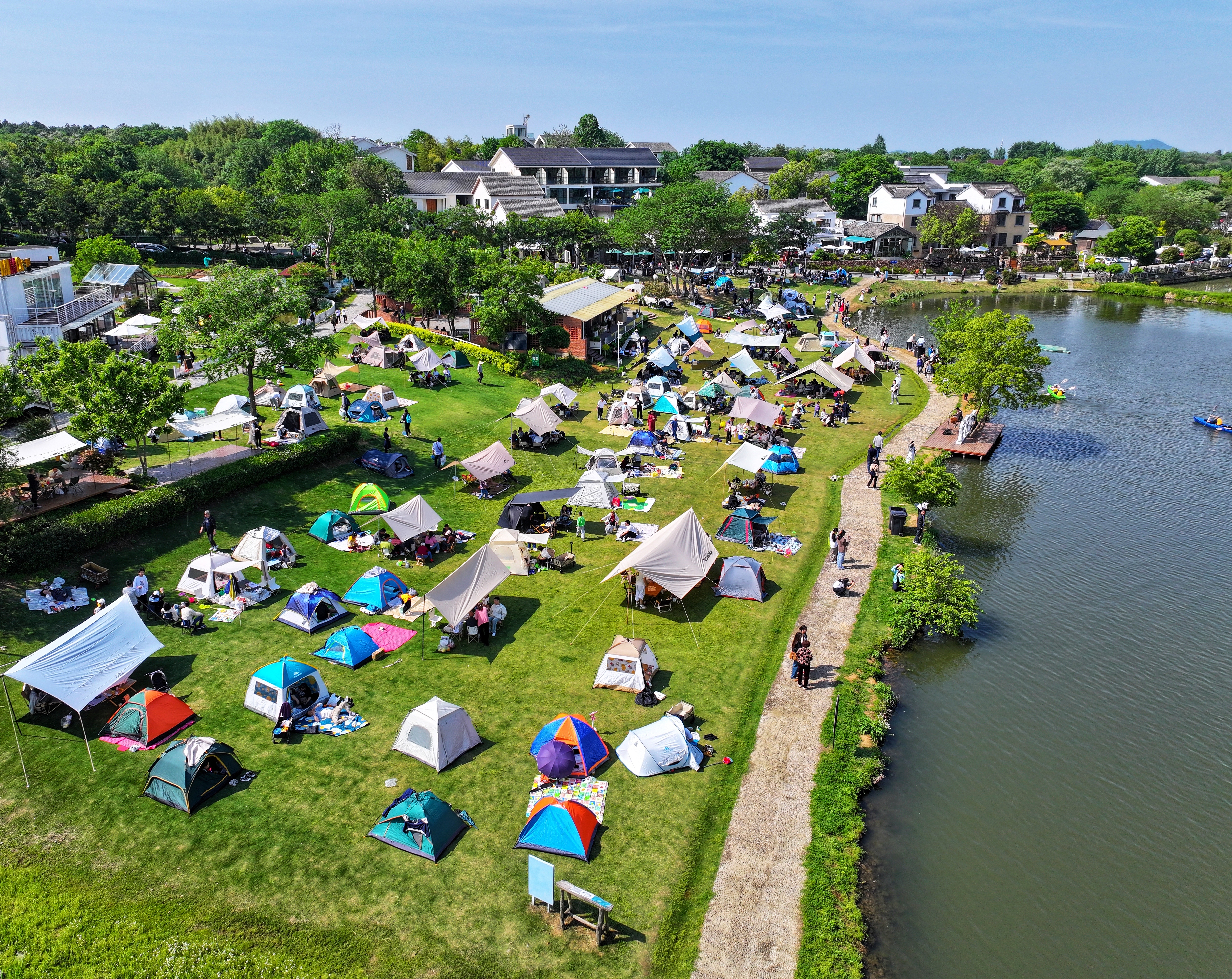 近两年,天气舒爽时,理想村空地上“长”满帐篷。目光所及,有连绵起伏的青山、波光粼粼的湖水,还有跑马场、森林剧场、皮划艇俱乐部等。理想村成为旅游休闲好去处。