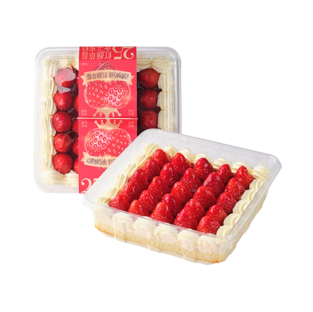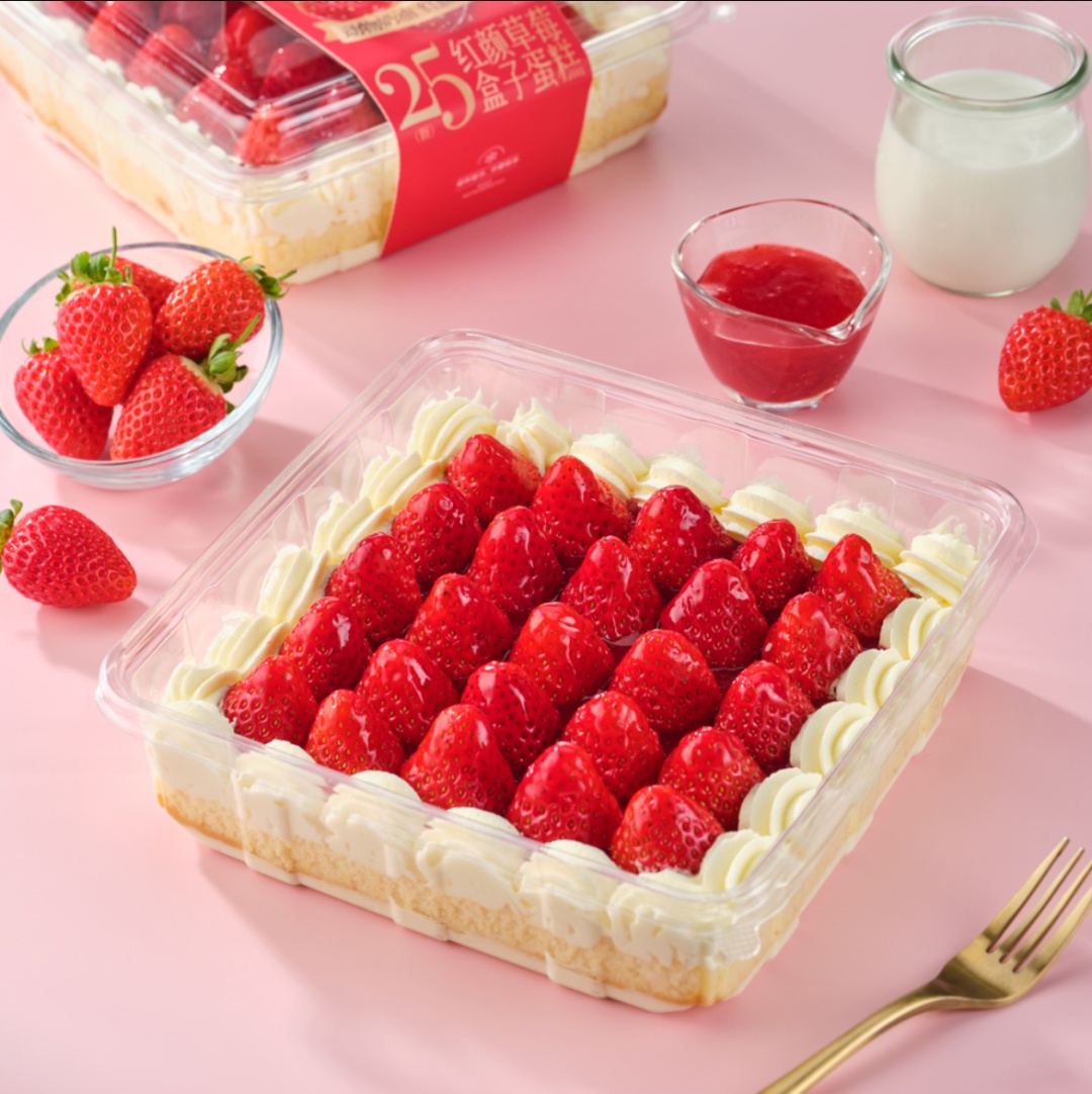 2021年,盒马首次在上海、杭州等地门店推出草莓盒子蛋糕,凭借一个蛋糕上有25个完整的红颜草莓,成为受年轻人追捧的网红新品。