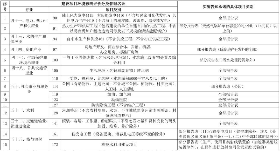 实施建设项目环境影响评价文件行政审批告知承诺的行业名单(2024年版)