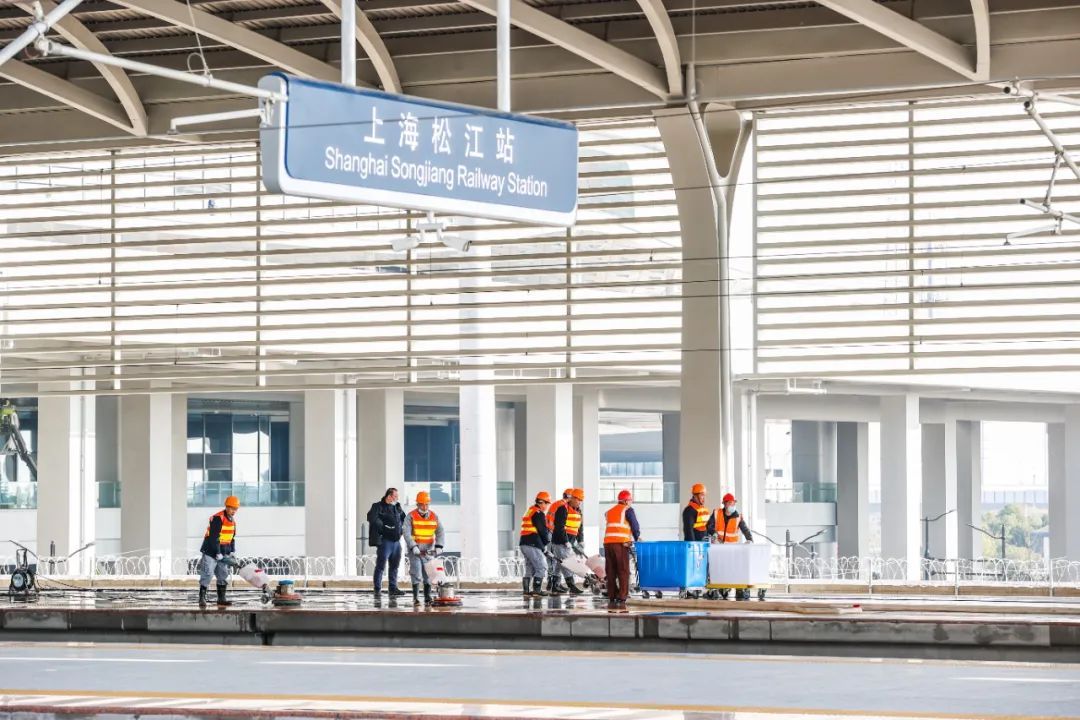候车层设有东、西、南3个高架进站口,站城融合的设计使得通过地铁、公交等公共交通方式进站的旅客在广场层乘坐扶梯就能直达北面候车厅,大大缩短了进站乘车距离。候车室两侧设置了14个检票口,3000个座椅将于近日陆续进场。上海松江站开通运营后,预计年均客流规模将达到2000万人次以上。“目前整个站区的建设工作已经基本结束,接下来将对安检系统、客票系统、语服系统、消防系统等设备设施进行精准调试。”上海站上海松江客运车间副主任王健告诉记者。
