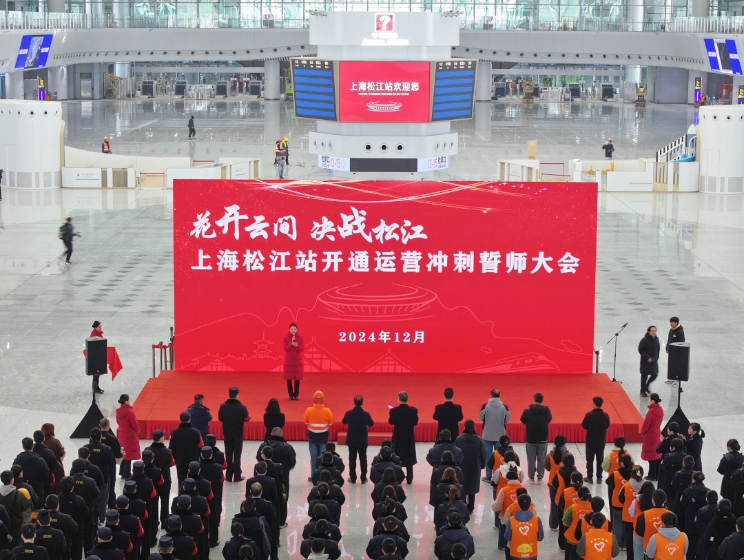 今天下午,来自铁路上海站、上海枢纽指挥部、申铁信息公司等7家单位的250余名职工齐聚上海松江站候车大厅,参与上海松江站开通运营冲刺誓师大会。据悉,上海松江站已进入全面收边收尾阶段,开通运营进入倒计时。
