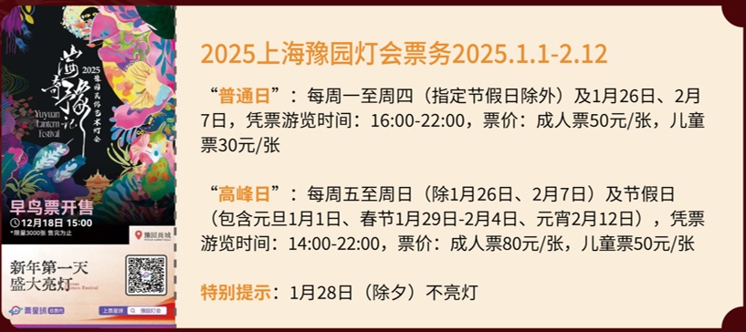 12月18日,特别限量发售豫园灯会“早鸟票”。