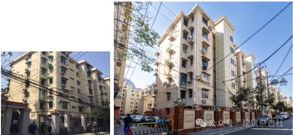 乐山六七村小区位于秀山路16弄,地处繁华的徐家汇商圈,是上世纪80年代末建成的老旧小区。小区常住居民2434人,其中60岁以上老年人1085人、占比44.6%,残疾人151人、占比6.2%,“悬空老人”问题一直困扰着徐汇区委、区政府。乐山六七村老旧小区改造项目于2019年8月开工,2020年6月完工,片区化修缮由财政出资,加装电梯工程由居民出资、政府补贴,改造面积为54860㎡,改造资金724.35万元。乐山六七村加装电梯工作于2021年全面启动,2023年底实现35个门洞加梯全覆盖。