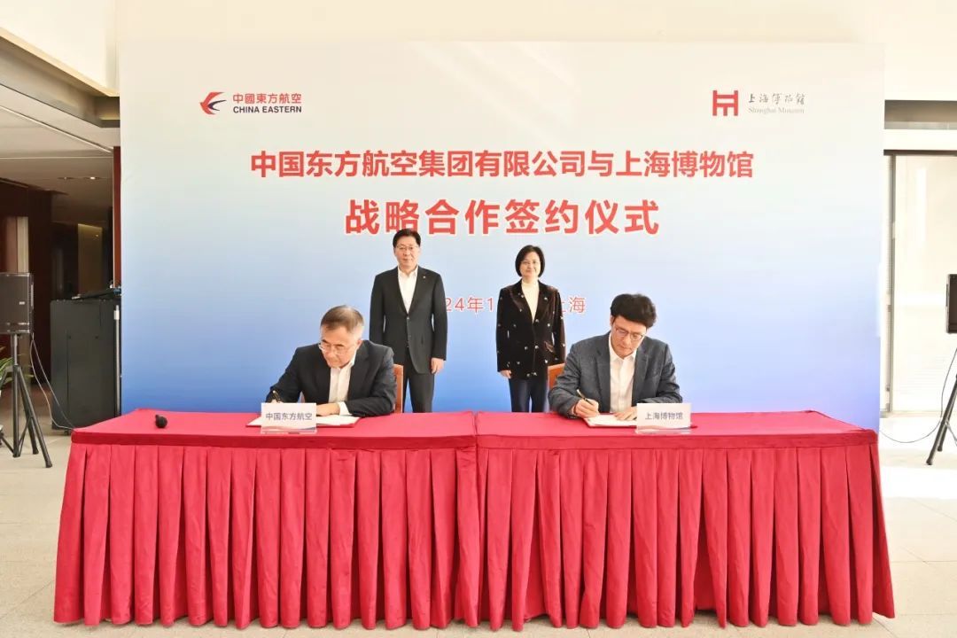 上海博物馆是“世界看中国、中国看世界”的重要窗口,中国东航是“世界飞中国、中国飞世界”的亮丽名片。在上博广受欢迎的“金字塔之巅:古埃及文明大展”期间,双方合作推出“博物馆优享”的“机票+门票”特色套餐产品,极大增强了双方所服务用户的体验。产品被列入2024上海服务消费“+”年华系列活动,截至目前,已吸引4.2万名国内旅客和千余名海外旅客乘坐东航前往上博观展,取得良好的社会反响。此次双方签署战略合作框架协议,将进一步做强商旅文体展共联,围绕双方品牌合作推广、航空机票、展览门票、文创产品、文物运输、飞机涂装等方面开展具体合作,建立深层次、多领域的战略合作伙伴关系。实现优势互补、合作共赢,为推动上海国际消费中心城市建设,加强国际传播能力建设、促进文明交流互鉴,持续提升中华文明的传播力影响力作出贡献。