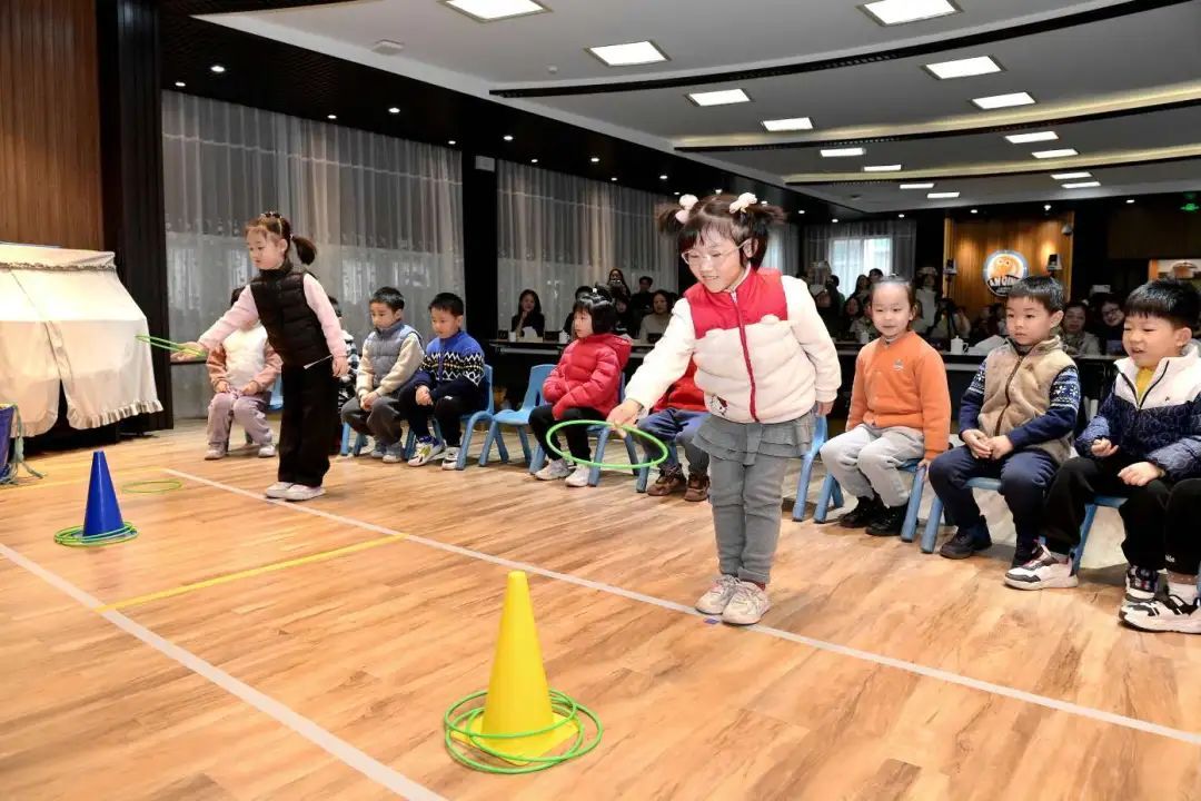 当数学遇上游戏,会发生什么趣事呢?活动开幕式上,幼儿园老师分享了大班“趣味套圈”数趣游戏,孩子在游戏中主动思考,运用数量组成的经验解决“到底套中多少圈”的问题,不断积累游戏经验,在快乐中不知不觉地培养幼儿思维能力、提升学习品质、建构新经验……这是安庆幼儿园多年来以游戏为手段,从幼儿的年龄特征与兴趣需要出发,以轻松愉快的游戏形式开展数学活动实践的一个缩影。