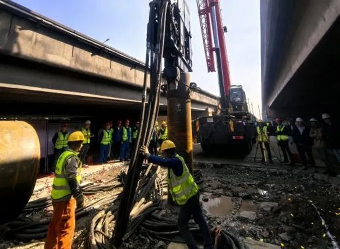 近日,上海外环西段交通功能提升工程土建施工8标段(闵行体育公园段)完成首件钢管桩施工作业,标志着本标段正式开工建设,预计2028年12月底完工。