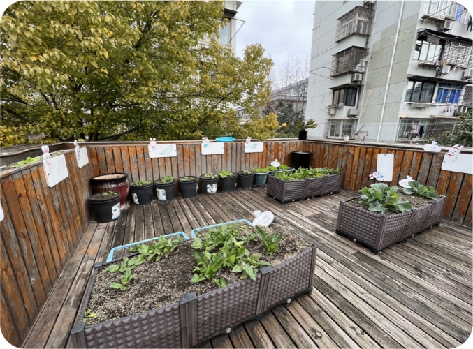 可食地景微改建项目中,通过孩子们的脑力激荡,提出微改建的创意,比如:增加灯带、为小鸟安置小木屋、增加指示牌等。把孩子的创意进行汇总提供给第三方设计公司,通过设计师进行项目设计并落实。微改建后,邀请孩子们参与可食地景的春耕、秋收,感受可食地景改变。