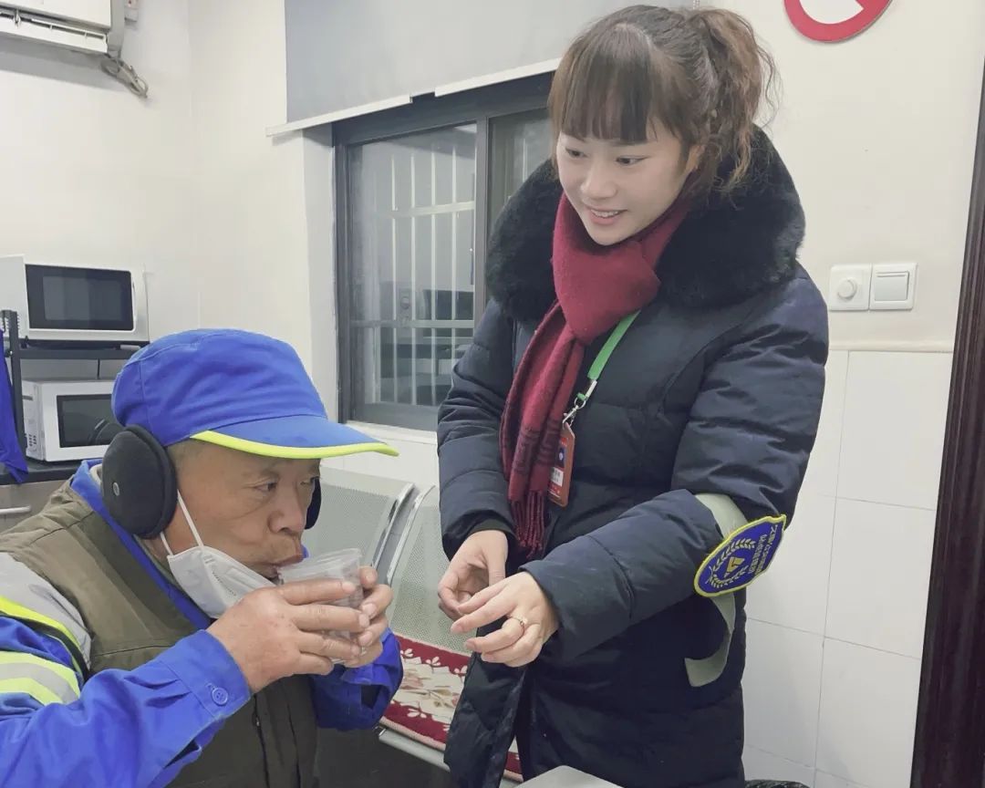 与公交一线职工的作息时间一样,环卫工人也都是在清晨五点左右就开工了,每天清晨的第一杯热水从爱心接力站开始。813路的站管员们总是热情地为环卫工人们接上热水递到他们手中,让他们在寒冷的早晨感受到一丝温暖,“他们是我们城市的美容师,每天起早贪黑,非常辛苦。能够为他们提供一点力所能及的帮助,我们也很高兴。”除了热水,接力站还备有应急药箱等物品,方便户外工作者应对突发情况。