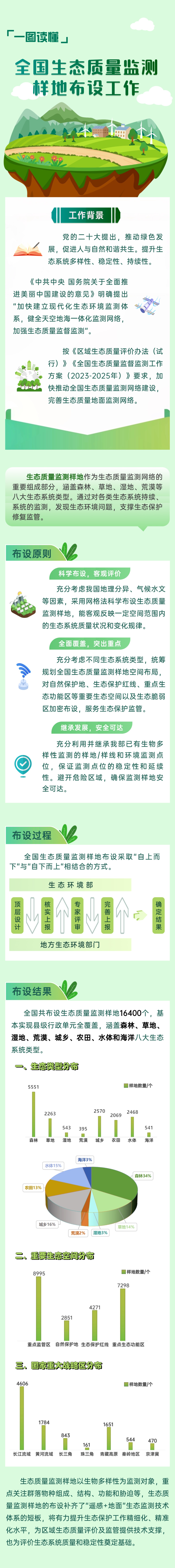为深入贯彻全国生态环境保护大会精神,落实《中共中央 国务院关于全面推进美丽中国建设的意见》部署,加快构建完善生态质量监测网络,生态环境部正式印发《全国生态质量监测样地设置方案》,在全国共布设16400个样地,基本实现县级行政单元全覆盖,补齐地面生态质量监测短板。结合已布设的171个生态质量综合监测站,全国生态质量监测网络初步建成。
