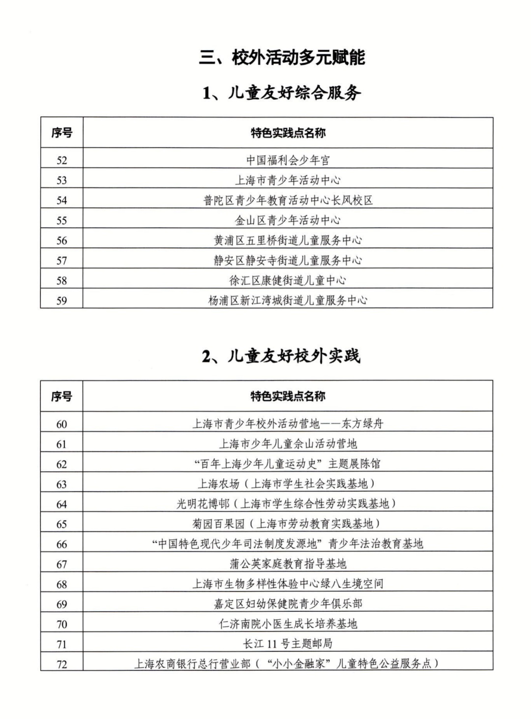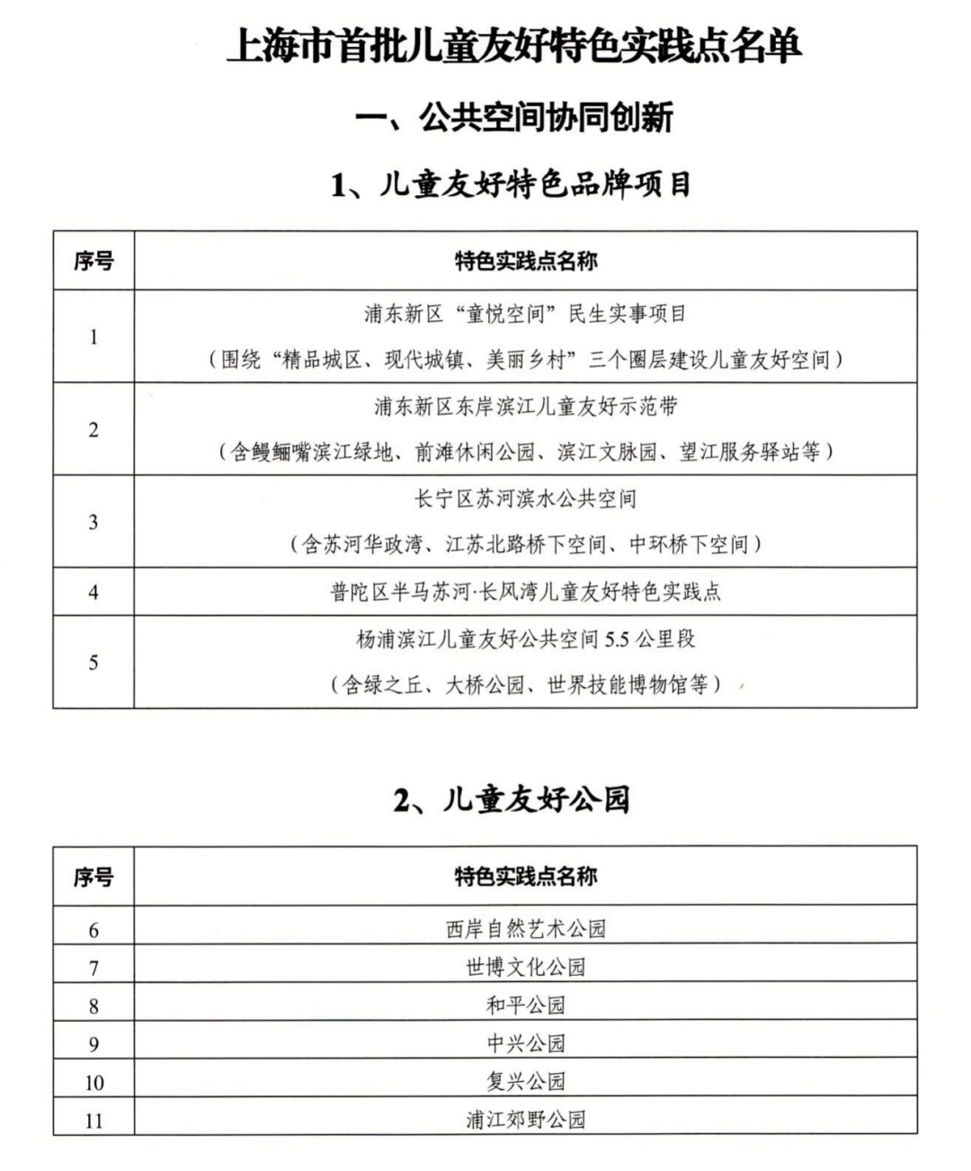 市发展改革委介绍,近日,市发展改革委、市妇儿工委办、市住房城乡建设管理委联合印发《关于印发首批上海市儿童友好特色实践点名单的通知》,公布上海首批100个儿童友好特色实践点,一起来看↓