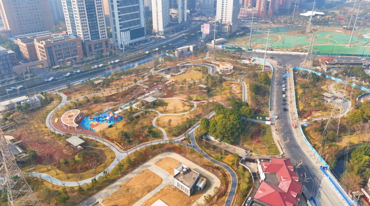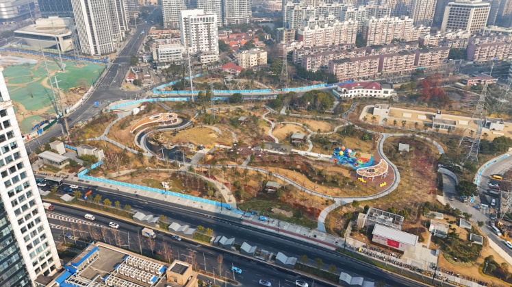 武宁公园此次改造的主题为“绣之光”,旨在为市民打造一处绣境花田、环境优美、全龄友好的社区公园。具体而言:在高压线下勾勒场地空间,沿街打开的界面、跨越道路的绿环,通过修复场地生态,以跨越春、夏、秋三季的多彩绣球为特色,营造形成缤谷绣廊的植物景观,并与真如绿廊缝合串联;新建活力运动、儿童友好、生态场景等特色体验场所,地下还设有1.3万平方米地下停车库,为广大市民提供服务。