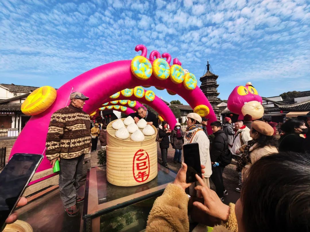 大年初二(1月30日),南翔老街上张灯结彩、喜气洋洋,吸引了大量市民游客参观打卡。“小笼特色的人偶做得特别好,很有特色!嘉定的年味感觉一年比一年浓了。”游客李女士说。