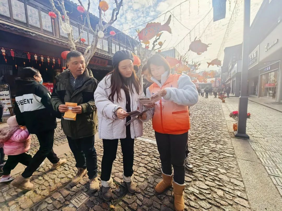 同时,为营造文明旅游氛围,南翔老街招募了一批志愿者担任文明旅游引导员。她们身着统一服装,在园区内巡视,一旦发现不文明行为,便会以礼貌而坚定的态度进行劝阻和引导。志愿者朱明珠介绍说:“今年是我第三年做志愿者了,希望能够通过大家的努力宣传、引导、劝阻,和游客朋友一起维护良好的旅游环境,让大家有更好的旅游体验。”