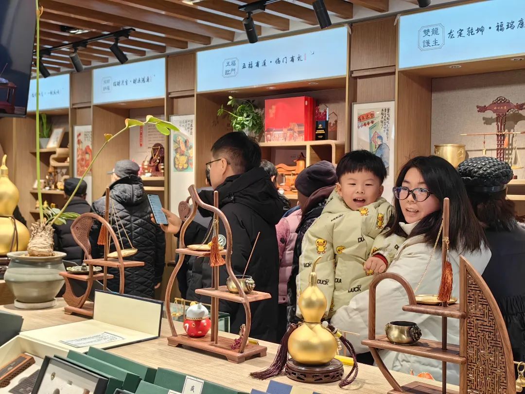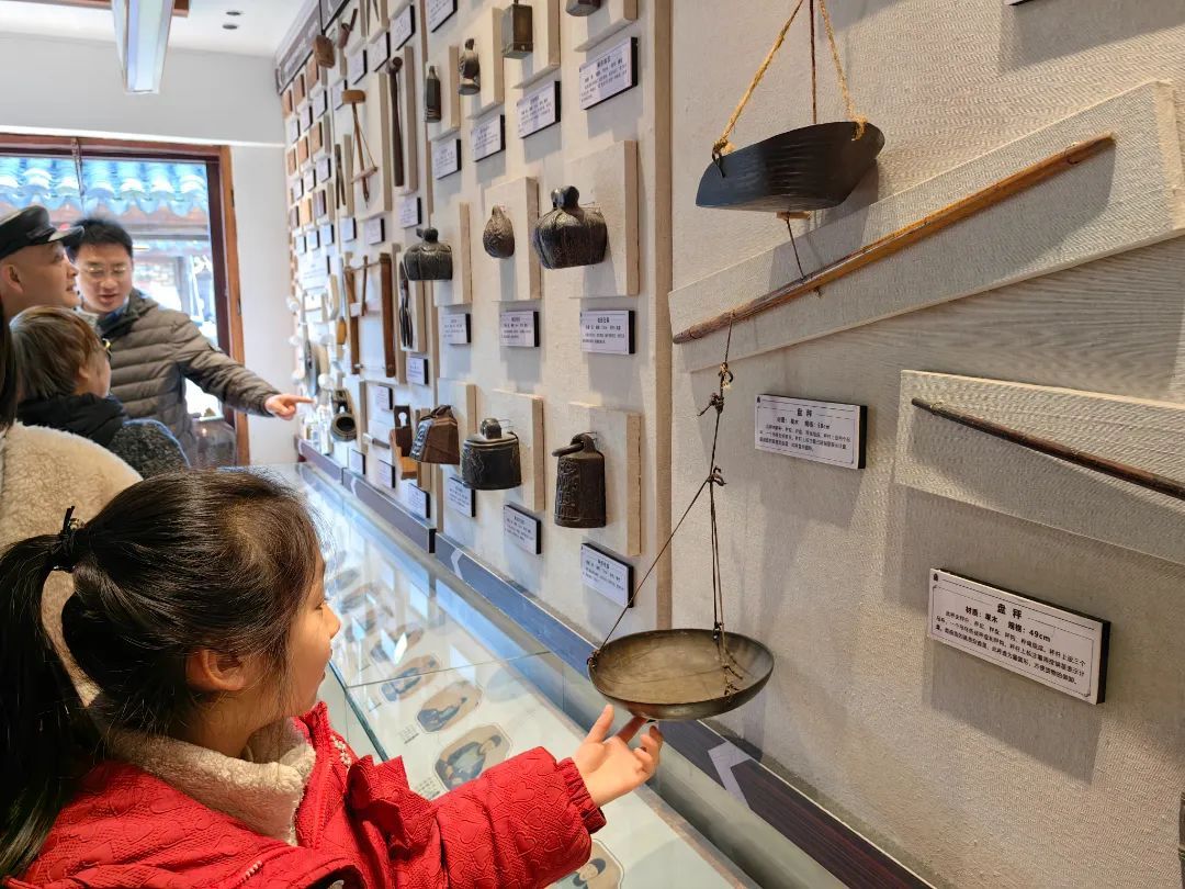 “普天同秤民艺馆”同样吸引了众多游客。馆内摆放着各式各样的秤具,从古朴厚重的杆秤到造型精巧的戥子,应有尽有。现场,还有家长向孩子讲述“秤不离砣”的生活智慧,通过实物让孩子感受传统文化的博大精深。“图个好口彩,希望新的一年生活工作都能称心如意。”买下秤具的游客表示道。