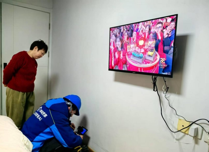 上海移动北区分公司“装维铁军”新春期间按需做好上门服务。